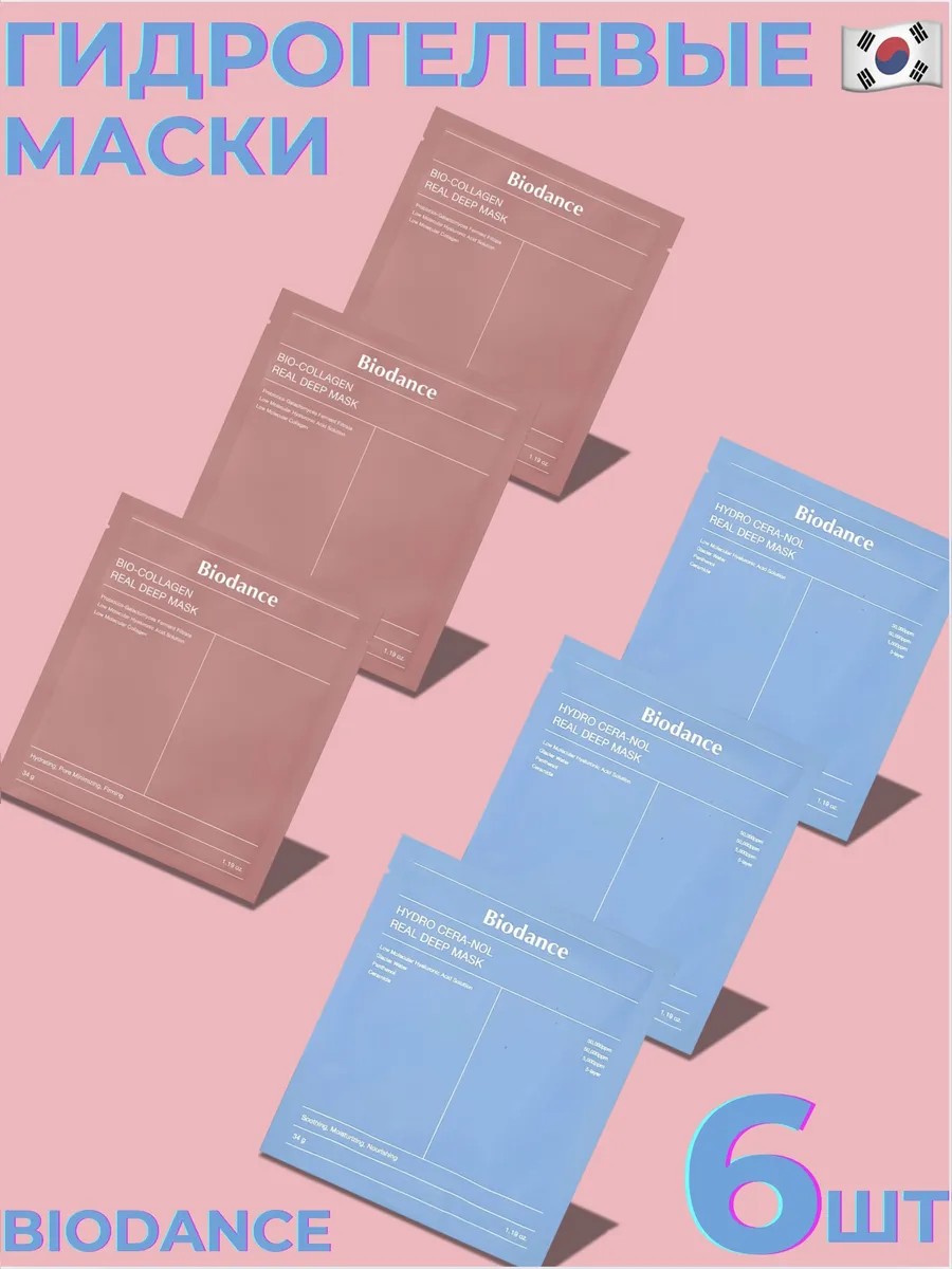 Ночная гидрогелевая маска ОРИГИНАЛ! с коллагеном для эластичности кожи Biodance Bio-Collagen Real Deep Mask содержит концентрированную коллагеновую эссенцию, которая впитывается за 3-4 часа, преображая кожу: интенсивно увлажняет, питает и смягчает, сужает расширенные поры, выравнивает рельеф и придаёт здоровое сияние. Устраняет тусклость и сухость, улучшает выработку собственного коллагена и гиалуроновой кислоты, укрепляет естественный защитный барьер. Ночная гидрогелевая маска с церамидами против сухости Biodance Hydro Cera-Nol Real Deep Mask — это тающая маска, пропитанная концентрированной эссенцией. Интенсивно питает и увлажняет, заживляет сухую и повреждённую кожу, снижает чувствительность и укрепляет защитный гидролипидный барьер. Устраняет шелушение, смягчает огрубевшие и обветренные участки, запускает внутренние процессы регенерации и снимает раздражение. Восстанавливает за 3-4 часа, а также улучшает состояние кожи за ночь: маску можно использовать во время сна. Содержит церамиды, пантенол, гиалуроновую кислоту, галактомисис, экстракт коллагена, пробиотики и растительные экстракты