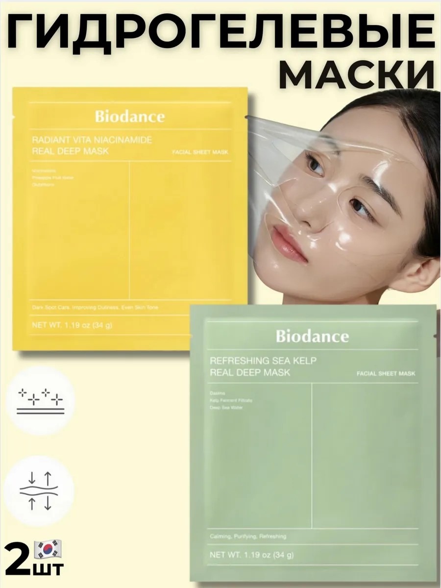 | Комплектация | Набор гидрогелевых масок Biodance Real Deep новинки 2шт |