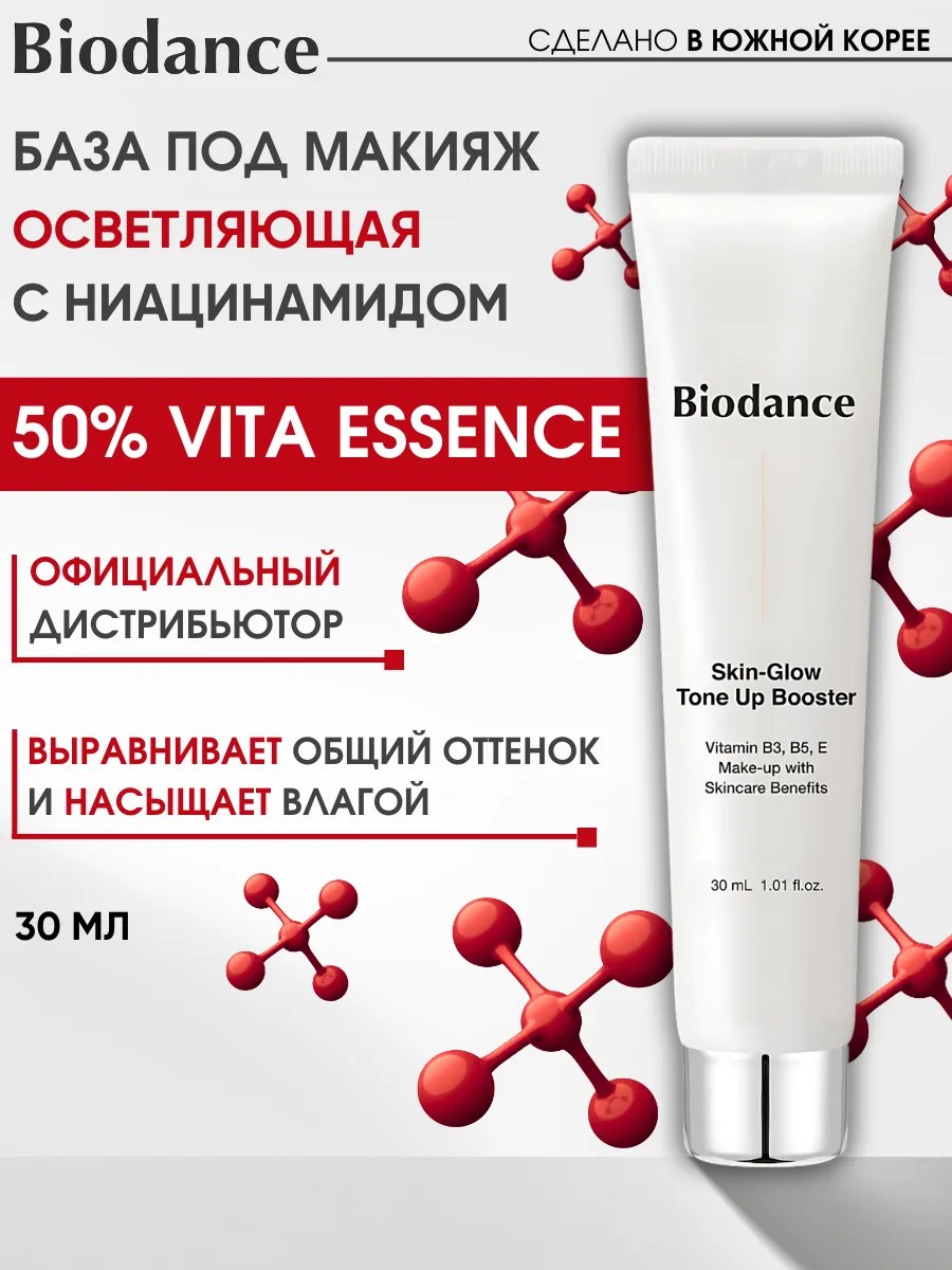 Представляем вам уникальную базу под макияж для лица Skin Glow Tone Up Booster от популярного корейского бренда Biodance. Этот прозрачный праймер не только создаст идеальное основание для макияжа, но и обладает осветляющим эффектом, выравнивает тон и рельеф кожи перед мейкапом, маскирует несовершенства и придаёт лёгкое естественное сияние. Специально разработанная формула этой основы под макияж визуально сужает поры. Blur эффект данной базы позволит забыть о жирном блеске, создавая эффект фотошопа в реальной жизни. Продукт на 50% состоит из увлажняющей эссенции, которая насыщает кожу влагой, успокаивает покраснения и воспаления, обеспечивает комфорт на весь день. База под макияж обеспечивает стойкий результат на весь день. С ним макияж не скатывается и не течёт, сохраняет яркость на весь день. Лёгкая текстура позволяет использовать его на любом типе кожи, будь то комбинированная или сухая кожа, склонная к чувствительности. Не откладывайте на потом заботу о своей коже - доверьтесь инновационному корейскому уходовому бренду Biodance и наслаждайтесь идеальным макияжем каждый день.