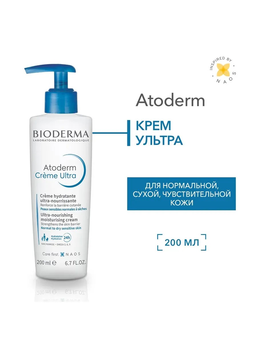 Bioderma Atoderm Ultra Крем для увлажнения лица и тела, 200 мл