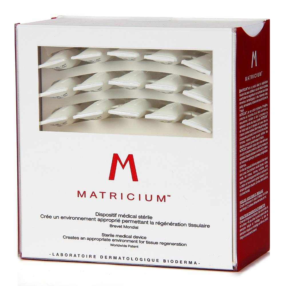 Matricium recreates an ideal cellular environment for the skin to regain its regenerative capacity . It consists exclusively of elements naturally found in skin cells and essential for their function and regeneration. The skin recovers its original biological function and is replenished with all the resources it needs for true skin regeneration. Matricium benefits from a special status it is not a cosmetic or a drug, but a medical device. Its 100 biomimetic formula is defined according to pharmaceutical industry standards and guarantees a high level of dermatological safety. Sterile, single-dose vials, preservative-free, paraben-free, fragrance-free, alcohol-free, high safety and tolerance, hypoallergenic, non-comedogenic. A product that promotes tissue regeneration in damaged skin (with surface discoloration and skin lesions caused by dermatological procedures, laser treatments, skin peels, dermabrasions or incisions, or with first-degree burns).Use a single dose for twice-daily application (morning and evening) until the skin is completely improved. For more frequent use, consult your doctor's prescription. A product that promotes tissue regeneration in damaged skin (with no smearing, no darkening of the skin surface, lesions caused by dermatological procedures, laser treatments, skin scraping, dermabrasion, or engraving, or with first-degree burns). Sterile doses, preservative-free, fragrance-free, paraben-free, alcohol-free, high tolerance and safety, hypoallergenic, non-comedogenic. Matricium benefits from a special status it is not a cosmetic or a drug but a medical device. Its 100 biomimetic formula is defined in accordance with pharmaceutical industry standards and guarantees a high level of dermatological safety. Matricium recreates an ideal cellular environment so that the skin regains its regenerative capacity . These are exclusively elements that are naturally present in the skin and are essential for cellular life, function, and regeneration. Cute recovers its original biological function and recharges with all the resources it needs for true skin regeneration.Bioderma Matricium 30 stérile 1 ml Single Doses traitement de beauté de la peauDESCRIPTION DU PRODUIT Matricium recréera un environnement cellulaire idéal pour que la peau retrouve sa capacité de régénération . Ce sont exclusivement des éléments qui se trouvent naturellement dans la vie des cellules de la peau et sont essentiels pour la fonction et la régénération. La peau récupère sa fonction biologique originale et est rechargée avec toutes les ressources dont elle a besoin pour une véritable régénération cutanée. – bénéficient d'un statut spécial, matricium n'est pas un cosmétique ou un médicament mais un dispositif médical. Sa formule 100 Biomimetic est définie selon les normes de l'industrie pharmaceutique et garantit une sécurité dermatologique de haut niveau. Doses individuelles stériles, sans conservateur, sans parabène, sans parfum, sans alcool, haute sécurité et tolérance, hypoallergénique, non comédogène. Un produit qui favorise la régénération du tissu en peau endommagée (avec surface non-obscurcissement et lésions cutanées causées par des procédures dermatologiques, des traitements laser, des peaux, des dermabrasions ou des incisions ou avec 1st-degree brûlures).Utilisez une dose unique pour une application deux fois par jour (matin et soir) jusqu'à ce que la peau soit complètement améliorée. Pour une utilisation plus fréquente, consultez la prescription de votre médecin. Un produit qui favorise la régénération des tissus en peau endommagée (avec sans bavures, non-obscurcissement surface peau lésions causées par des procédures dermatologiques, des traitements laser, des peaux, des dermabrasions ou des gravures ou avec 1st-degree Burns). Doses stériles, sans conservateur, sans parfum, sans parabène, sans alcool, haute tolérance et sécurité, hypoallergénique, non comédogène. bénéficient d'un statut spécial, Matricium n'est pas un cosmétique ou un médicament mais c'est un dispositif médical. Sa formule 100 biomimetic est définie en conformité avec les normes du secteur pharmaceutique et garantit une sécurité dermatologique de haut niveau. Matricium recrée un environnement idéal Cellular afin que la peau retrouve sa capacité de régénération . Ce sont exclusivement des éléments qui sont naturellement présents dans la peau et sont essentiels pour la vie, la fonction et la régénération cellulaire. Cute récupère sa fonction biologique originale et se recharge avec toutes les ressources dont elle a besoin pour une véritable régénération cutanée.