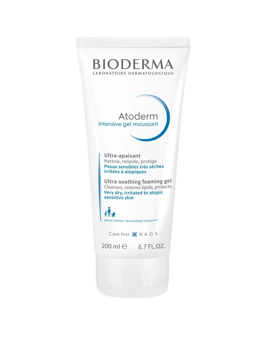 Bioderma Atoderm Intensive Gel Moussant (200 ml) with physiological pH gently cleanses the skin without disturbing its protective barrier.