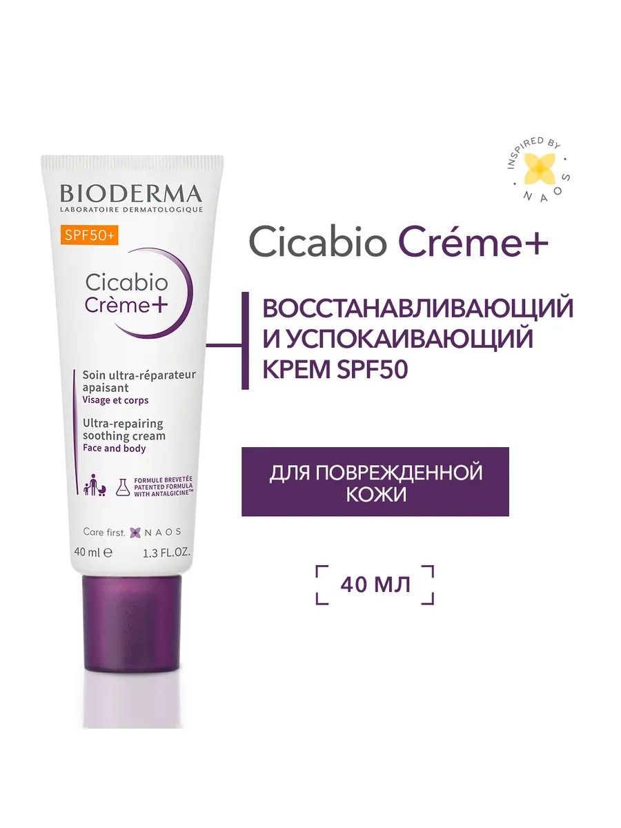 Bioderma Cicabio Восстанавливающий успокаивающий крем SPF 50+, 40 мл