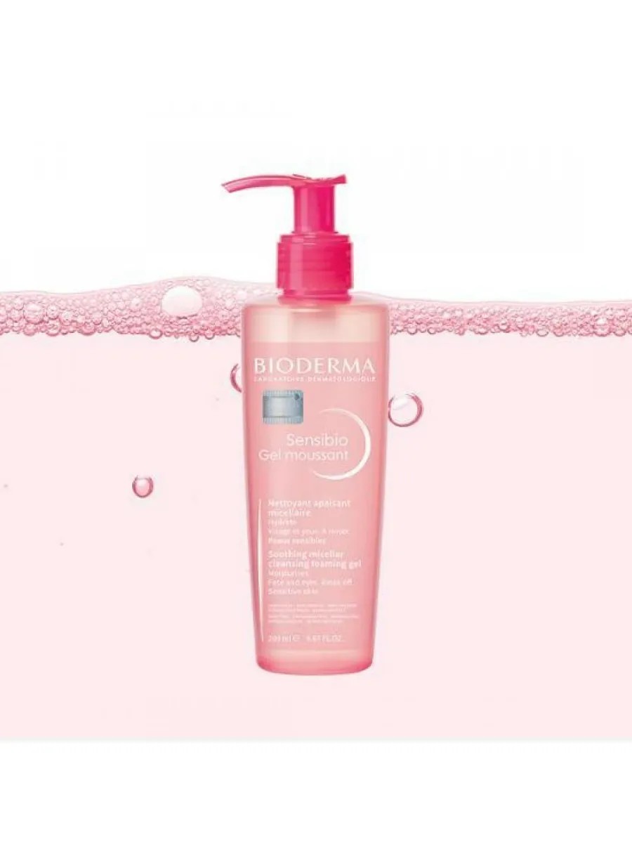 Bioderma Sensibio Gel Moussant, a transparent gel, gently cleanses sensitive skin of impurities, makeup, and excess sebum.