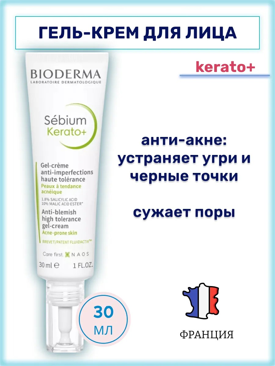 | Комплектация | Bioderma SEBIUM KERATO+ / Sebium гель-крем Керато+, 30 мл |