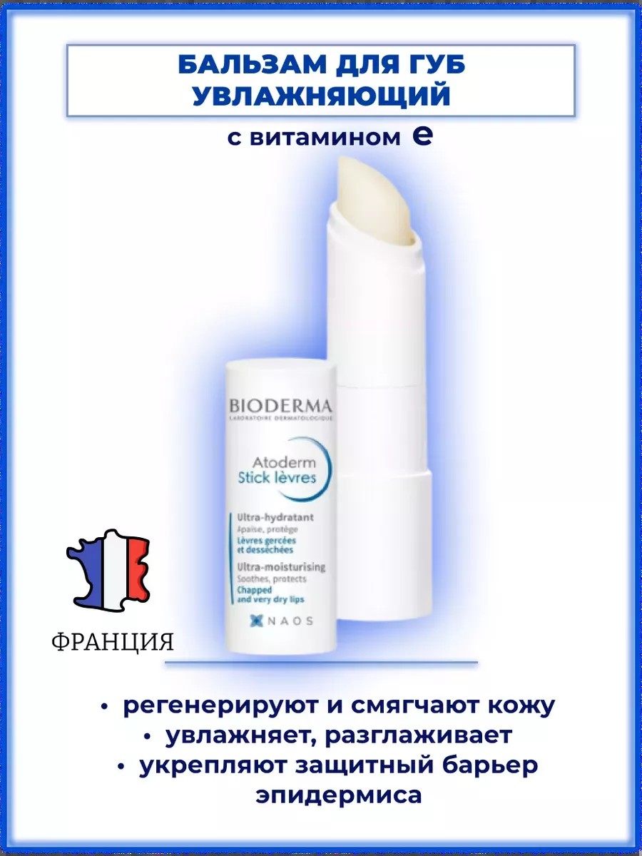 Bioderma Бальзам для губ увлажняющий бесцветный Атодерм 4 гр