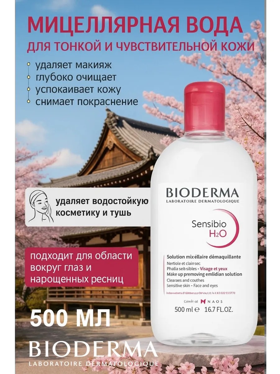 Bioderma Sensibio H20 micellar water for sensitive skin and eye contour gently cleanses and removes makeup. This product contains micelles that literally capture impurities without disturbing the skin's hydrolipidic balance. Soothing ingredients prevent irritation. Bioderma micellar water is highly tolerable by skin and mucous membranes. It is hypoallergenic and suitable for all skin types, including sensitive and reactive skin.