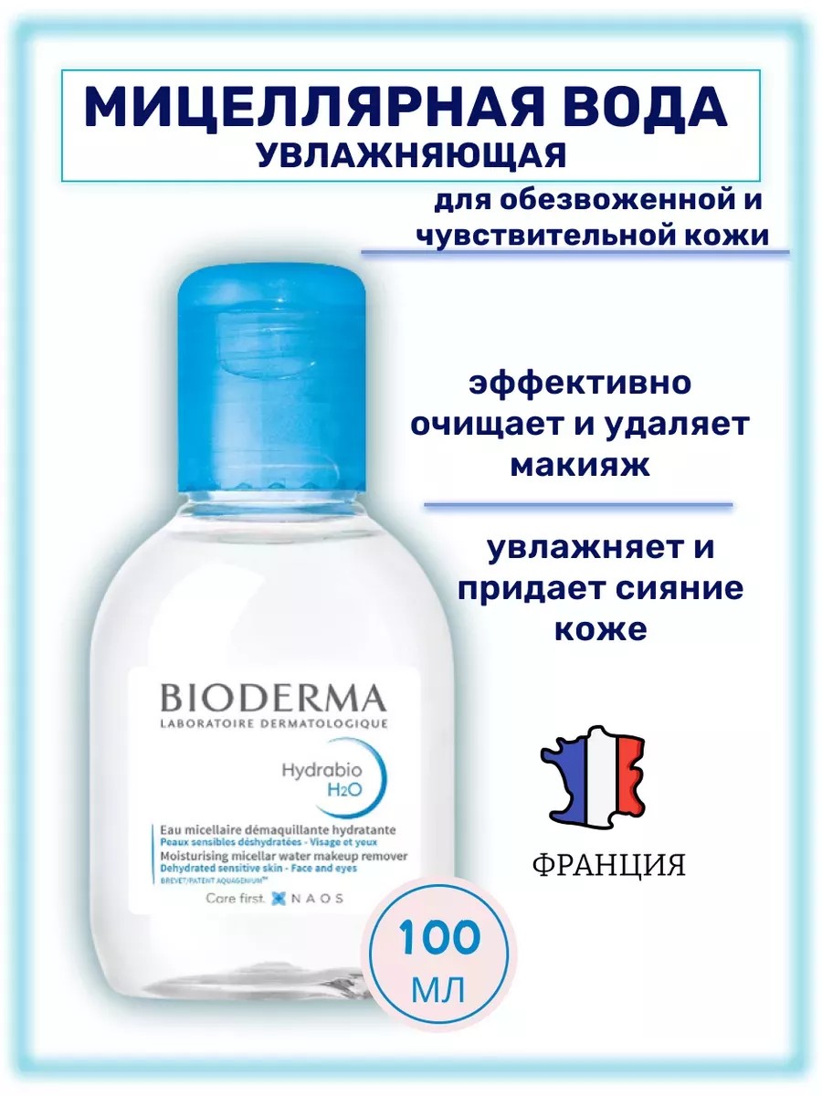 Очищающая мицеллярная вода Биодрема Гидрабио H2O / Bioderma Hydrabio H2O для обезвоженной чувствительной кожи.