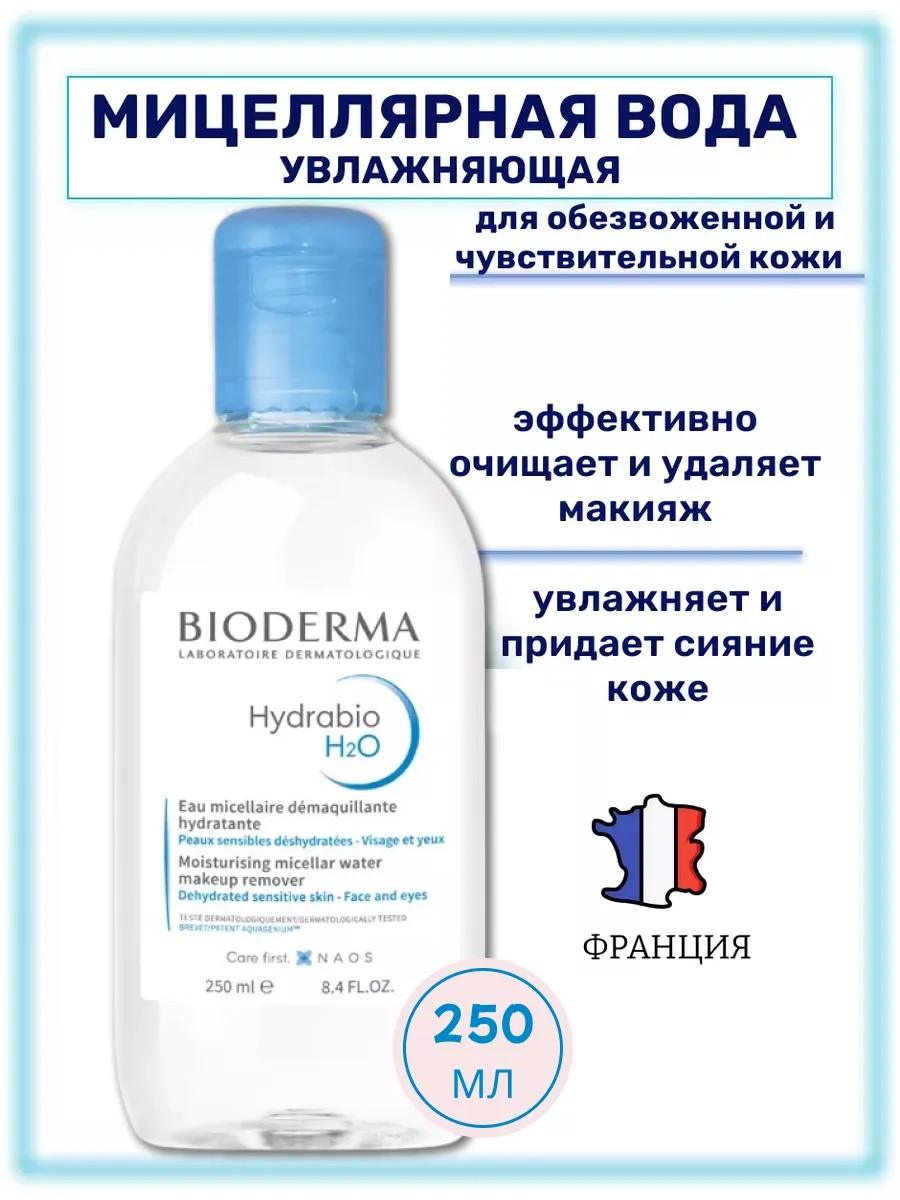 Очищающая мицеллярная вода Биодрема Гидрабио H2O / Bioderma Hydrabio H2O для обезвоженной чувствительной кожи.