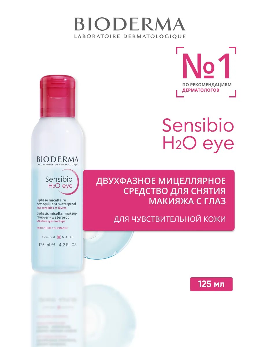 Двухфазное средство Bioderma Sensibio H2O eye эффективно удаляет загрязнения, при этом не раздражает чувствительную кожу контура глаз и губ. Протестировано офтальмологами и дерматологами, подходит при ношении контактных линз. Не требует смывания водой и не оставляет ощущения жирной плёнки.