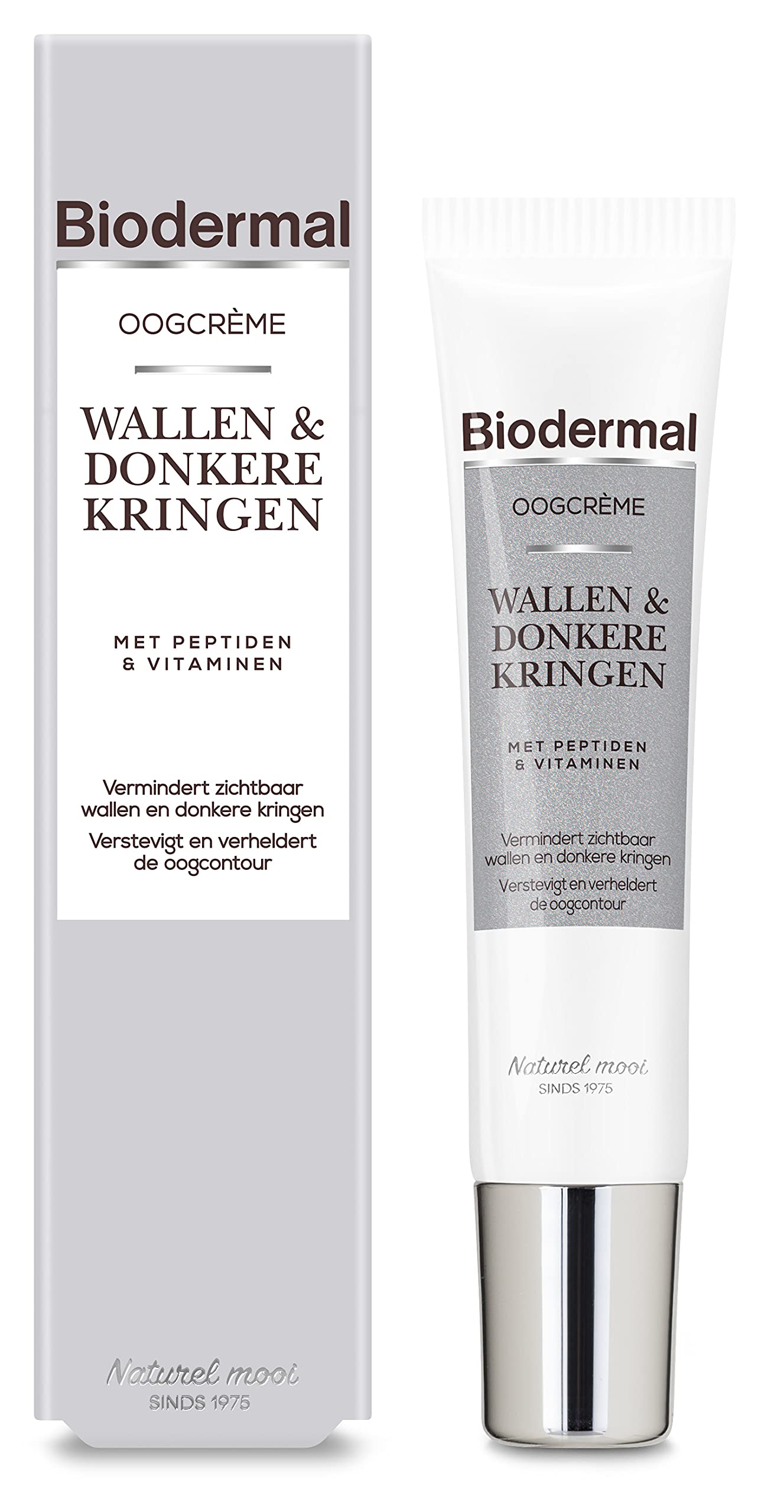 New from Biodermal: Biodermal Eye Cream for Puffiness and Dark Circles. This new eye cream for puffiness is a lightweight eye cream suitable for all skin types. The skin around the eyes is very thin and delicate, constantly moving throughout the day. You blink, frown, and smile, which keeps the skin under your eyes in constant motion. Furthermore, the skin around your eyes often shows the first signs of aging, and you may experience puffiness and dark circles, making you look tired. Therefore, use Biodermal's new eye cream and apply it morning and evening. The highly concentrated formula contains an effective combination of ingredients that visibly reduces puffiness and dark circles and diminishes the appearance of wrinkles and fine lines. The fragrance-free formula intensely moisturizes, gives the skin around the eyes a fresh and radiant look, and strengthens the skin. How it works: This new eye cream reduces visible puffiness and dark circles. The cream tones and brightens the eye contour and diminishes the appearance of fine lines and wrinkles. Strengthens - Niacinamide (vitamin B3) improves skin elasticity and strengthens the skin by stimulating collagen production. Peptides counteract the appearance of puffiness. Brightens - The effective combination of peptides and niacinamide reduces the appearance of dark circles and age spots around the eyes. Hydrates - Clean hyaluronic acid and panthenol (pro-vitamin B5) provide the skin with intensive and long-lasting hydration, leaving the eye contour looking fresh and less tired. How to Use: After at least 1 week of use, skin is already more hydrated. After at least 4 weeks of twice-daily application, puffiness is visibly reduced. After at least 8 weeks of twice-daily application, dark circles are visibly brightened. After at least 8 weeks of twice-daily application, the dark spots (pigmentation) around the eyes will lighten and diminish. Tip: Take a before and after photo. It can sometimes be difficult to see the results because this eye cream works gradually. A before and after photo can help you show the results. "Wrinkles and fine lines fade. Hyaluronic acid and panthenol (vitamin B5) intensely and lastingly hydrate the skin, leaving the eye area looking fresh and less tired. Peptides and niacinamide (vitamin B3) reduce the appearance of dark circles and age spots around the eyes. Peptides also counteract the appearance of puffiness.Biodermal Oogcrème Wallen Donkere Kringen 15 mlDESCRIPTION DU PRODUIT " Nouveau de Biodermal: Crème pour les yeux Biodermal pour Puffiness et Cercles foncés. Cette nouvelle crème pour les yeux pour les poches est une crème pour les yeux légère et adaptée à tous les types de peau. La peau autour des yeux est très fine et fragile, se déplace presque toute la journée. Vous clignotez, vous froncez et vous souriez, ce qui rend la peau sous vos yeux toujours en mouvement. En outre, la peau autour de vos yeux montre souvent les premiers signes du vieillissement de la peau et vous pouvez y éprouver des poches et des cernes, ce qui vous permet d'avoir l'air fatigué. Par conséquent, utilisez la nouvelle crème pour les yeux de Biodermal et appliquez-la le matin et le soir. La formule hautement concentrée contient une combinaison efficace d'ingrédients qui réduit visiblement les poches et les cernes et estompe les rides et les ridules. La formule sans parfum hydrate intensément, donne à la peau autour des yeux un aspect frais et lumineux et renforce la peau. Fonctionnement : Cette nouvelle crème pour les yeux réduit les poches et les cernes visibles. La crème tonifie et éclaircit le contour des yeux et estompe les rides et les ridules. Renforce - La niacinamide (vitamine B3) améliore l'élasticité de la peau et renforce la peau en stimulant la production de collagène. Les peptides contrecarrent la visibilité des poches. Éclaircit - La combinaison efficace de peptides et de niacinamide réduit la visibilité des cernes et des taches pigmentaires autour des yeux. Hydrate - L'acide hyaluronique propre et le panthénol (pro-vitamine B5) donnent à la peau une hydratation intensive et prolongée et rendent le contour des yeux frais et moins fatigués. Utilisation : Après au moins 1 semaine d'utilisation, la peau est déjà mieux hydratée Après au moins 4 semaines deux fois par jour lubrifier ses poches diminuent visiblement Après au moins 8 semaines de lubrification deux fois par jour ses cernes éclairent visiblement Après au moins 8 semaines de lubrification deux fois par jour ses taches (pigment) autour des yeux éclaircit et réduit Astuce: Prenez une photo avant et après . Il est parfois difficile de voir les résultats, car cette crème pour les yeux agit progressivement. Une photo avant et après peut vous aider à montrer le résultat. "Les rides et les ridules s'estompent. L'acide hyaluronique et le panthénol (vitamine B5) hydratent la peau intensément et pendant une longue période, laissant le contour des yeux l'air frais et moins fatigué. Les peptides et le niacinamide (vitamine B3) réduisent la visibilité des cernes et des taches pigmentaires autour des yeux. Les peptides contrecarrent la visibilité des poches.