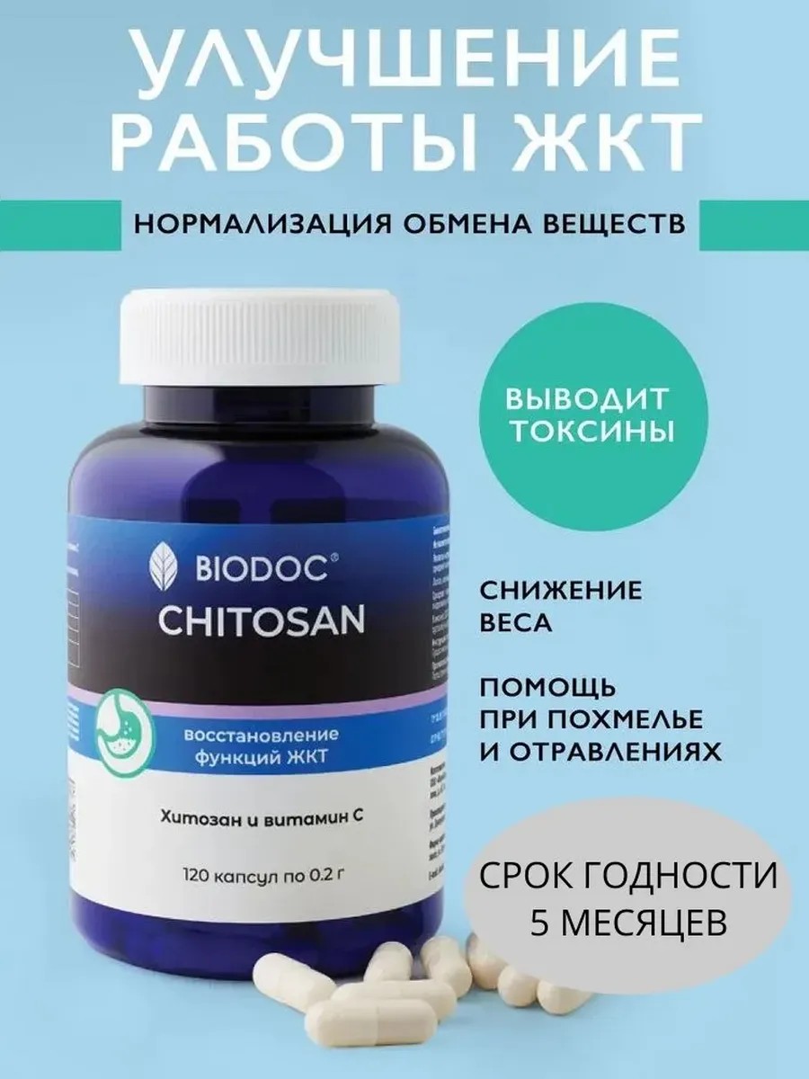 BIODOC БАД Хитозан для похудения и очищения с витамином С, 120 шт