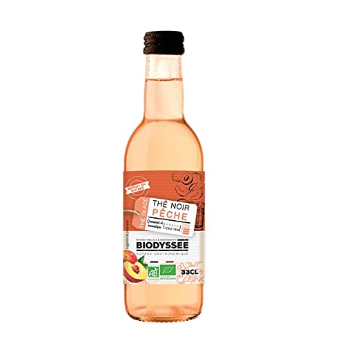 Iced drink made with black tea, rosehips, hibiscus flowers, and organic peach juice concentrate. Delicious, aromatic, and lightly sweetened. 33clPeach Iced Tea 33cl. Biodyssée. Iced Tea. Flavored Water. Beverage.Boisson glacée à base de thé noir, de baies d'églantier, de fleurs d'hibiscus et de jus concentré de pêche issus de l'agriculture biologique. Gourmande, aromatique peu sucrée. 33clThé Glacé Pêche 33Cl. Biodyssée. Thé Glacé. Eau aromatisée. Boisson.Biodyssée - Thé Glacé Pêche 33Cl - Vendu par unité
