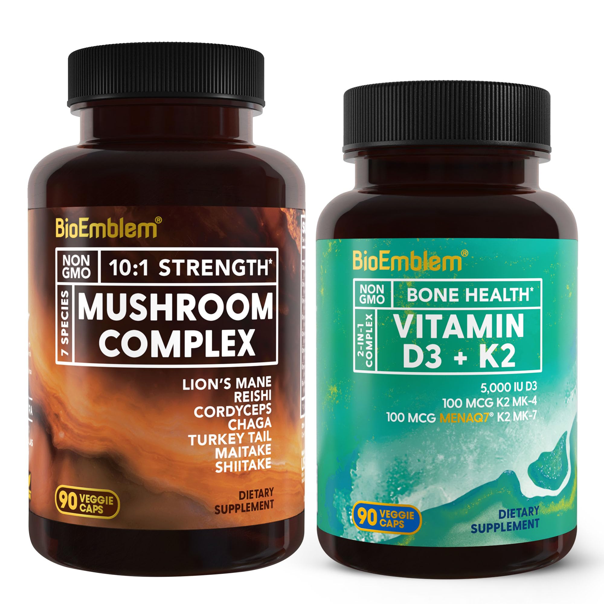 BioEmblem Vitamin D3 K2 (5000IU and 200mcg) and Mushroom Complex