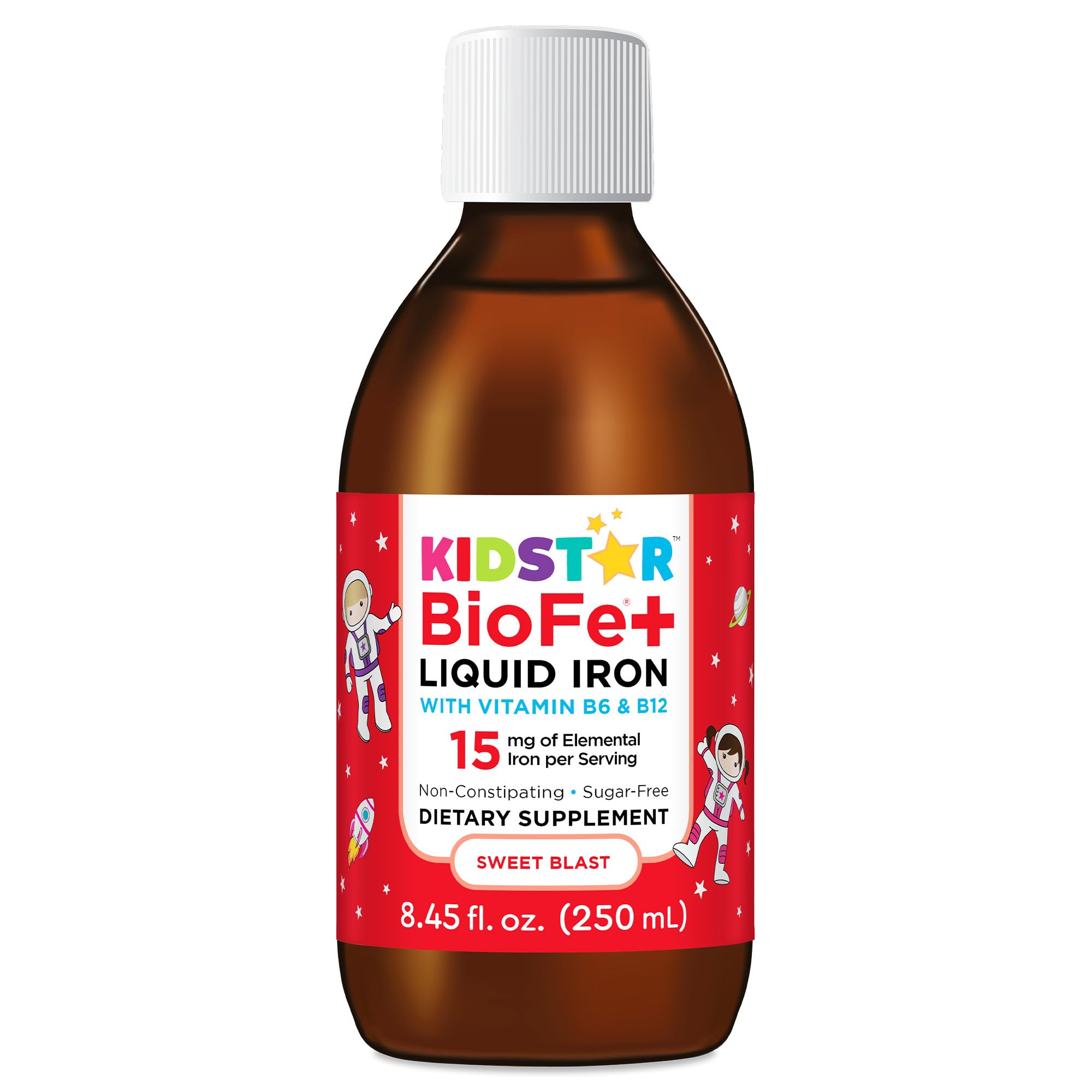 BioFe+ Iron Liquid for The Family No Sugar 8.45 Fl. Oz. 15mg Elemental Iron Non-Constipating Sweet Blast