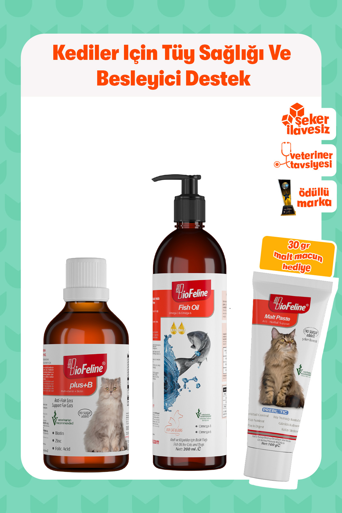 Biofeline Fish Oil, kedi ve köpeklerin Omega-3 ve Omega-6 esansiyel doymamis yag asidi ihtiyaçlarini karsilamak için üretilen özel bir üründür. Biofeline Fish Oil, kedi ve köpeklerin kaliteli ve saglikli bir yasam sürmesine destek olur. Tüy dökülmelerinde, dis ve dis eti sagliginda, alerjik deri rahatsizliklarinda, bagisiklik sisteminin güçlendirilmesinde, kalp ve göz hastaliklarinda etkili bir destektir. Kan basincini, sindirim ve dolasim sistemini düzenlemektedir. Kemikleri güçlendirmekte, ishal ve kabizligin sonlandirilmasina destek olmaktadir.