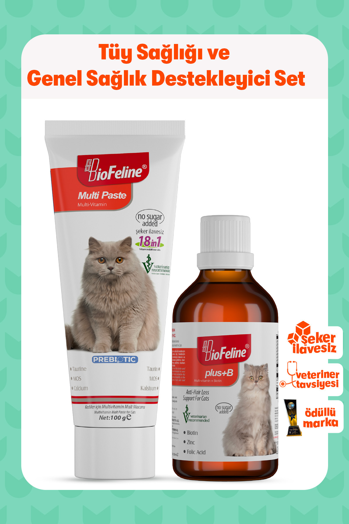 Biofeline plus B multivitamin meets cats' biotin and zinc needs. It contains the vitamins and minerals necessary for your cat to have healthy skin and coat. It revitalizes dry and dull coats. It supports the elimination of dermatological problems. It moisturizes and soothes the skin against dryness and itching. It supports healthy skin development. The vitamin E it contains neutralizes free radicals that can damage the skin.