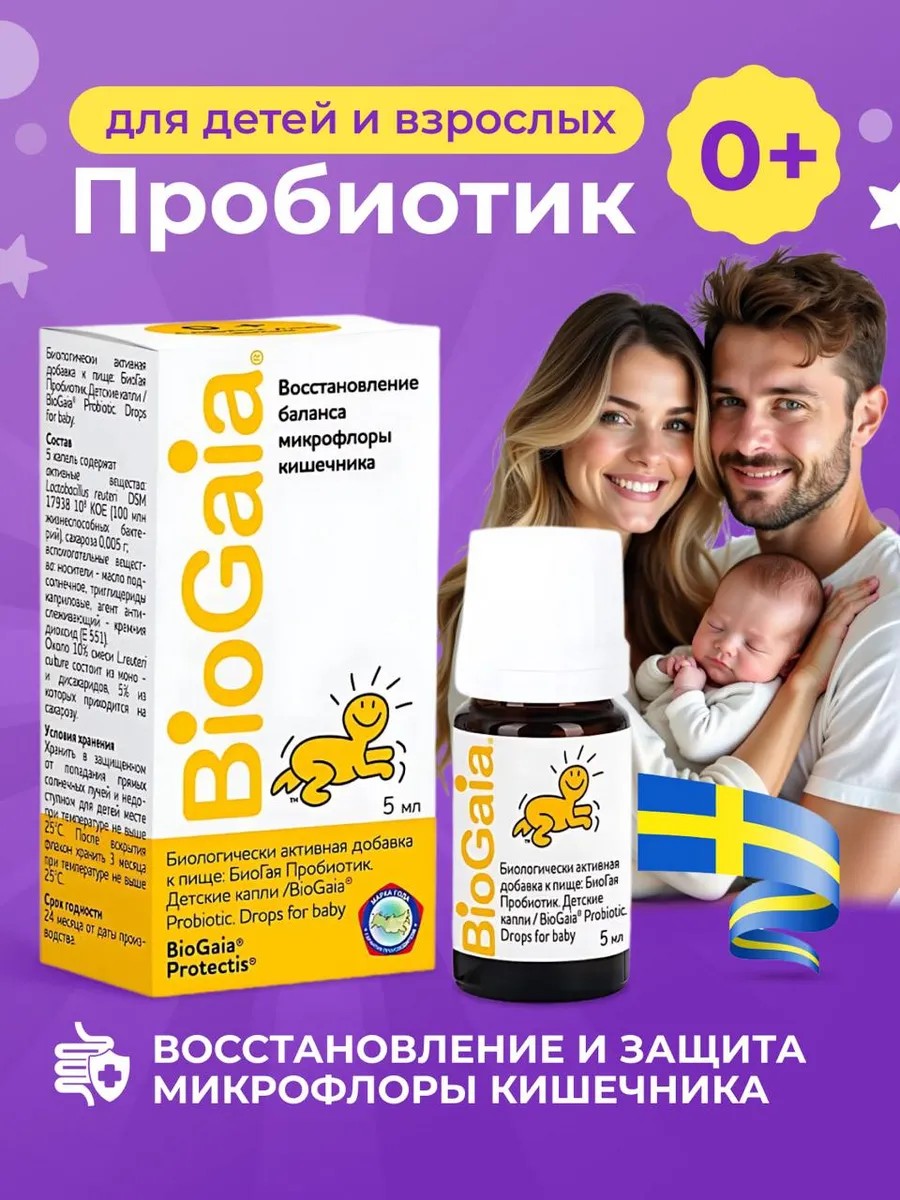 БиоГая Пробиотик. Детские капли / BioGaia Probiotic. Drops for baby можно применять одновременно с антибиотиками и другими лекарственными средствами.