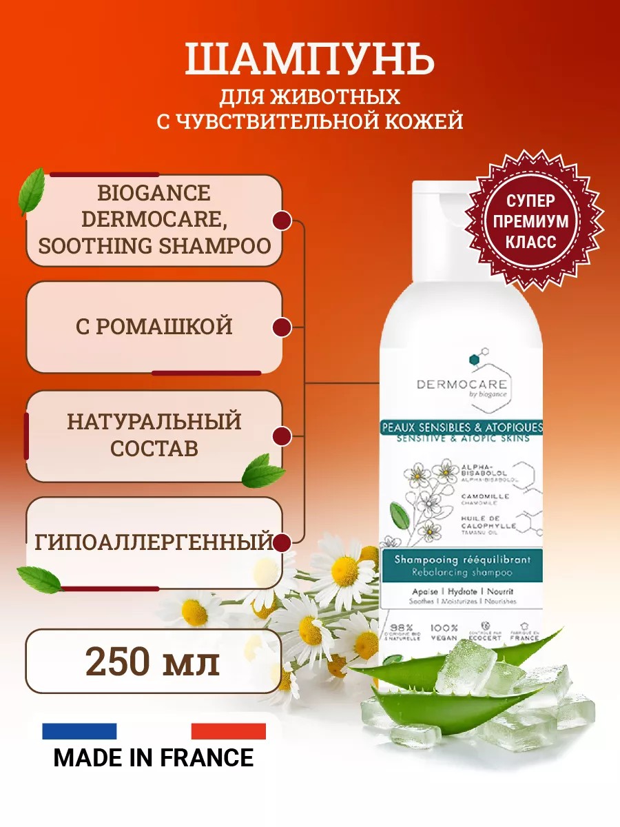 Ищете лучшие уходовые продукты для кошек или шампуни для собак и товары для животных? Позаботьтесь о комфорте Вашего пушистого друга с гипоаллергенным шампунем для собак и кошек Biogance Dermocare Soothing Shampoo! Этот шампунь для животных - идеальное решение для чувствительной и раздраженной кожи Вашего питомца!
