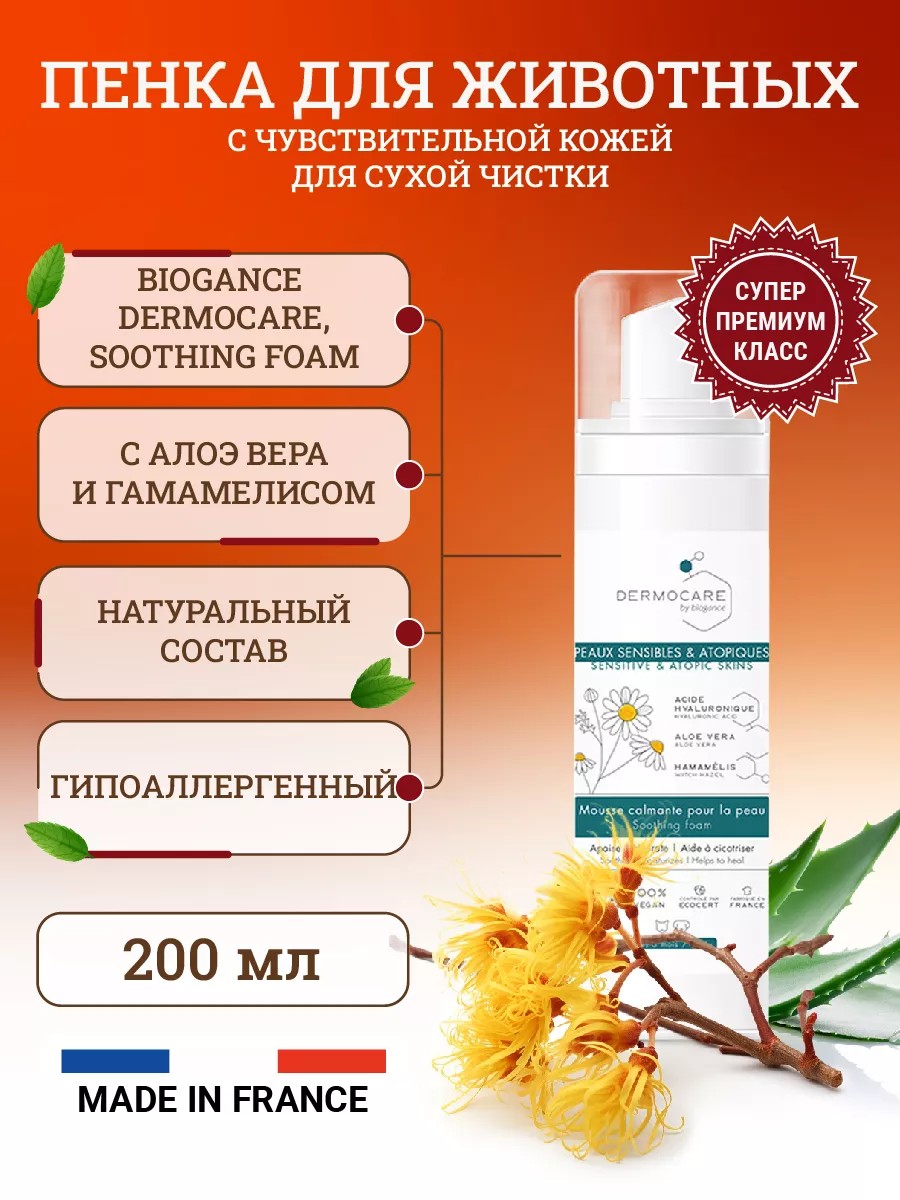 Биоганс Дермокеа пенка для животных, для раздраженной атопичной кожи / Biogance Dermocare, Soothing Foam, 200 мл