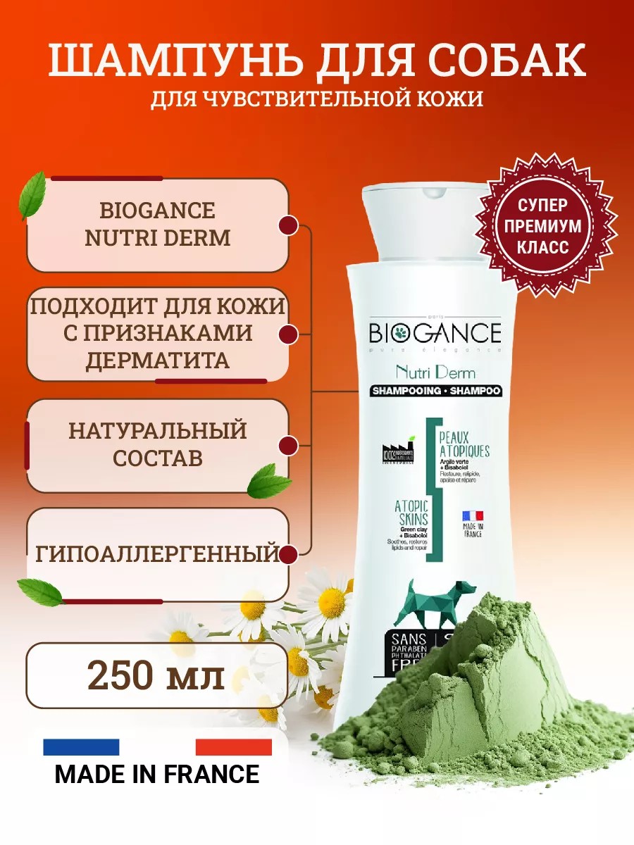 Ищете идеальные уходовые продукты для своей собаки и товары для животных? Biogance Нутри Дерм - шампунь для собак гипоаллергенный, который сделает Вашу собаку счастливой! Благодаря своему гипоаллергенному составу, этот шампунь идеально подходит для собак с чувствительной или воспаленной кожей, а также для тех, у кого есть признаки дерматита.