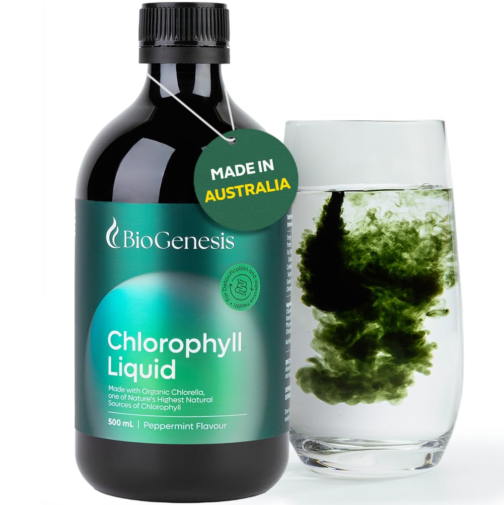 Certified Australian Grown – Pure, Trusted Sustainably Farmed— BioGenesis is proudly the only certified "Australian Made Grown" brand. Cultivated in the Great Barrier Reef region using biodynamic technology and pure spring water, our greens are lab-tested and pesticide-free. Clean Nutrition from Pure Extracts — Our Chlorophyll Liquid is made from organic chlorella and spirulina extracts through our patented hydrodynamic process to retain their natural nutrients for superior bioavailability. Unlike competitor's harshly treated formulas, BioGenesis preserves the purity, potency, and fresh essence of nature's finest greens in every drop. Nutrient-Rich Green Vitality in Every Sip — Each serving of BioGenesis Chlorophyll Liquid combines Organic Chlorella and Organic Spirulina Powders, natural sources of protein, chlorophyll, and potassium. Together, they deliver a powerful blend of essential vitamins, minerals, and antioxidants that help energize your cells and promote overall well-being. Convenient Daily Wellness —Enjoy the refreshing taste of our peppermint-flavoured liquid chlorophyll concentrate, free from artificial colours, flavours, and sweeteners. Simply shake the bottle and take 3 teaspoons (15ml) mixed with 250ml of water, juice, or your favorite smoothie. Feeling a little low or out of sync? BioGenesis Chlorophyll Liquid is your daily boost—rich in natural chlorophyll and antioxidants to refresh, cleanse, deodarize and energize from within. Supports gentle cleansing, gut health, digestion, and everyday vitality for a naturally balanced you.