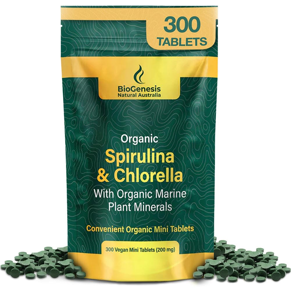 Biogenesis Organic Spirulina Chlorella & Marine Plant Minerals 300 Count (200 mg) | Australian Grown Algae Superfood | Support Energy & Immunity | Vegan Mini Tablets 300 Count (Pack of 1)