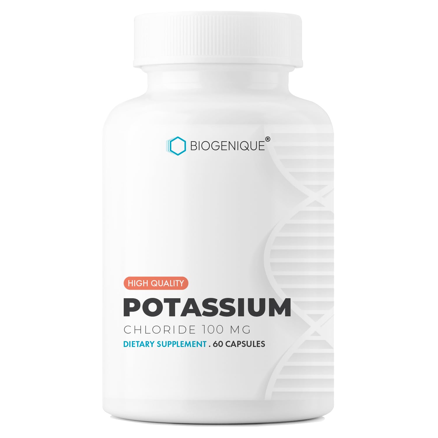 Biogenique Potassium Chloride - 60 Capsules Potassium 100MG - Healthy Muscle Function Heart Health & Electrolyte Balance - Made in Canada Pharmaceutical Grade Non-GMO