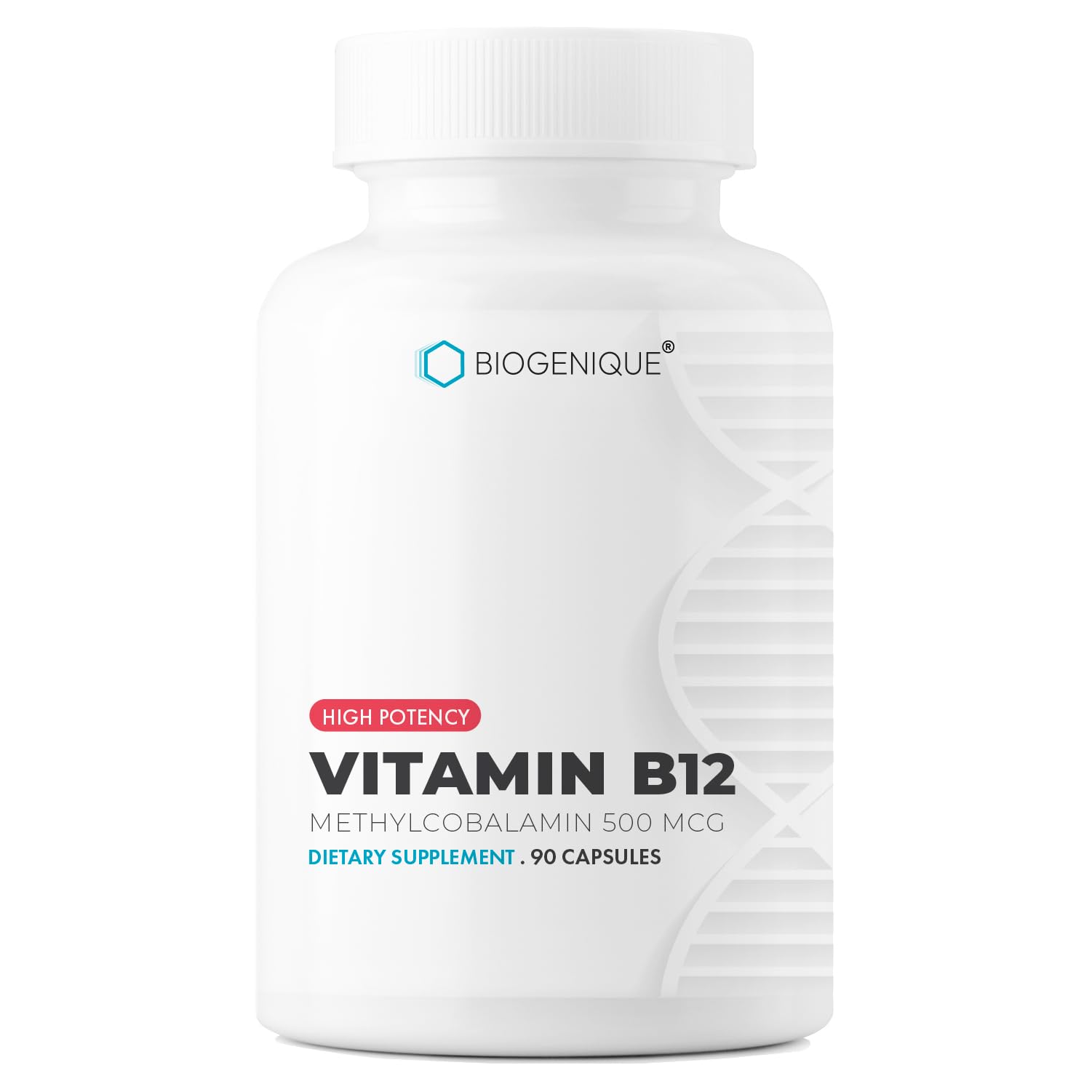 Biogenique Vitamin B12 - as Methylcobalamin Supports Energy Metabolism Nervous System Health Blood Cell Function and Methylation - Non OGM Gluten-Free Vitamin Supplement 90 Capsules
