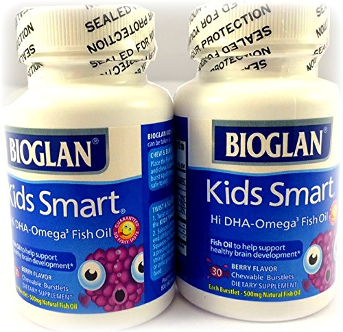 BioGlan Kids Smart Hi DHA Omega-3 Fish Oil 30 ea Chewable Burstlets Berry Pack of 2