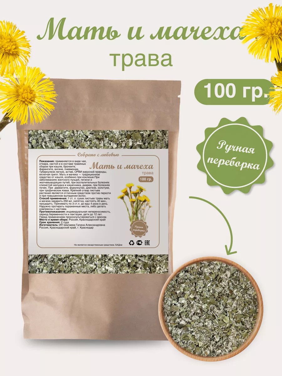 Трава мать и мачеха применяется в виде чая, отвара, настоя и в составе травяных сборов при кашле, бронхите, фарингите, ангине, пневмонии, туберкулезе легких, астме, ОРВИ вирусной природы, включая грипп. Мать и мачеха — традиционное средство от кашля, особенно при коклюше.При заболеваниях желчного пузыря, печени и желчевыводящих путей, при воспалительных болезнях слизистой желудка и кишечника, диарее, при болезнях почек. При дерматите, фурункулах, диатезе, золотухе, при трофических язвах. Крепкий отвар листьев растения является отличным средством против перхоти и при повышенном выпадении волос.