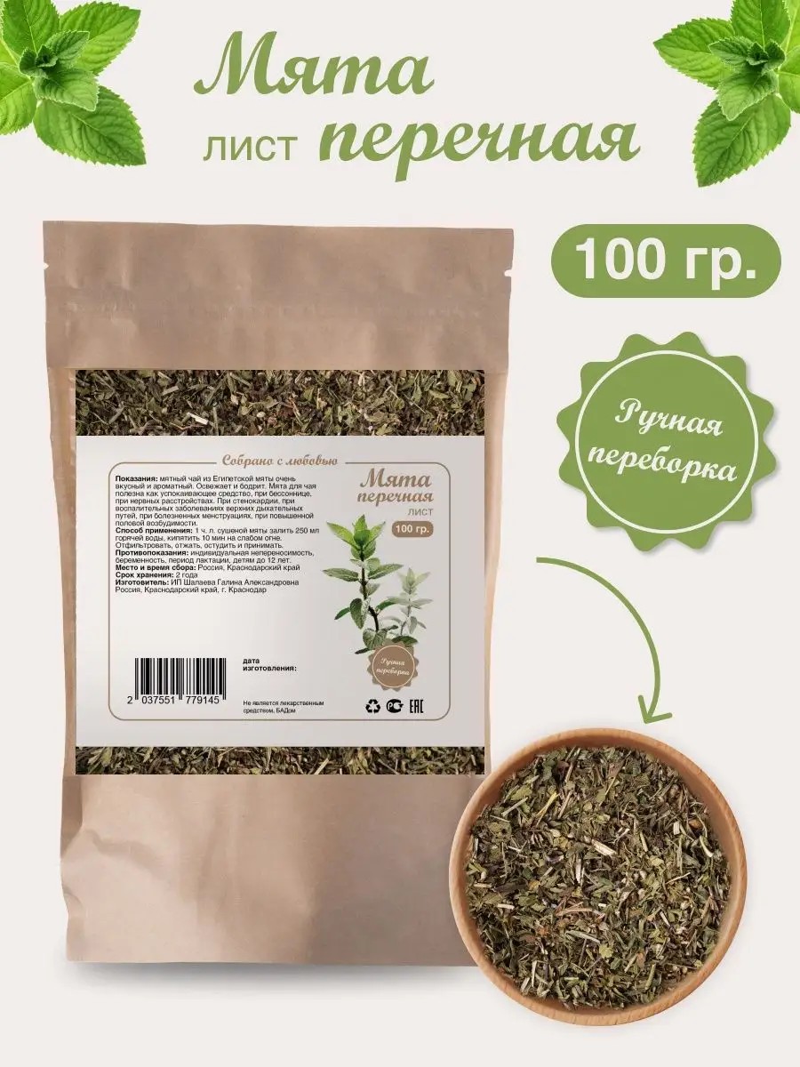 Мятный чай очень вкусный и ароматный. Освежает и бодрит. Мята перечная сушеная полезна как успокаивающее средство, при бессоннице, при нервных расстройствах. Мята лист при стенокардии, при воспалительных заболеваниях верхних дыхательных путей, при болезненных менструациях, при повышенной половой возбудимости. Способ применения: 1 ч л сушеной мяты залить 250 мл горячей воды, кипятить 10 мин на слабом огне. Отфильтровать, отжать, остудить и принимать. Противопоказания: индивидуальная непереносимость, беременность, период лактации, детям до 12 лет.
