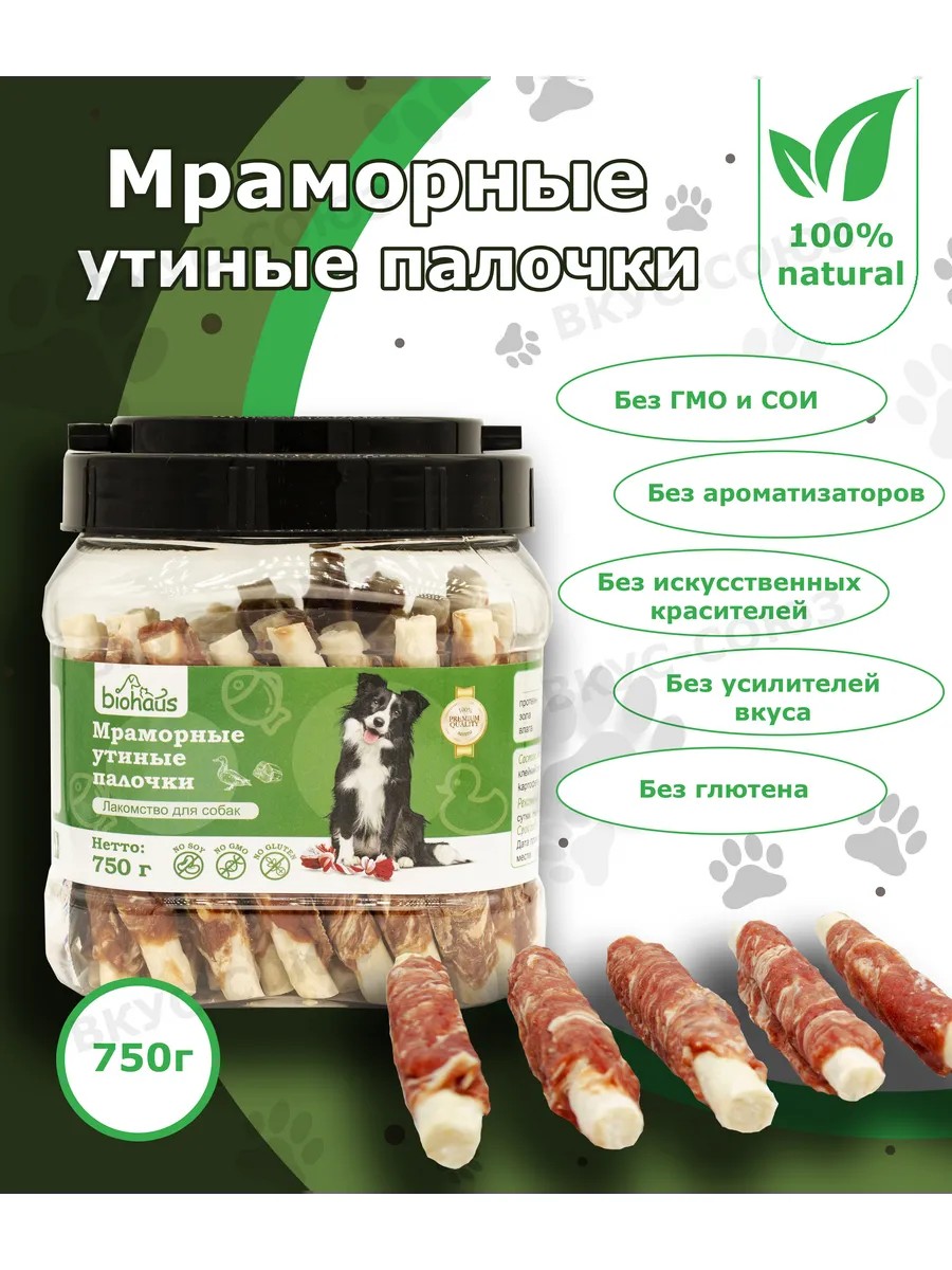 biohaus Лакомство для собак Мраморные утиные палочки 750г