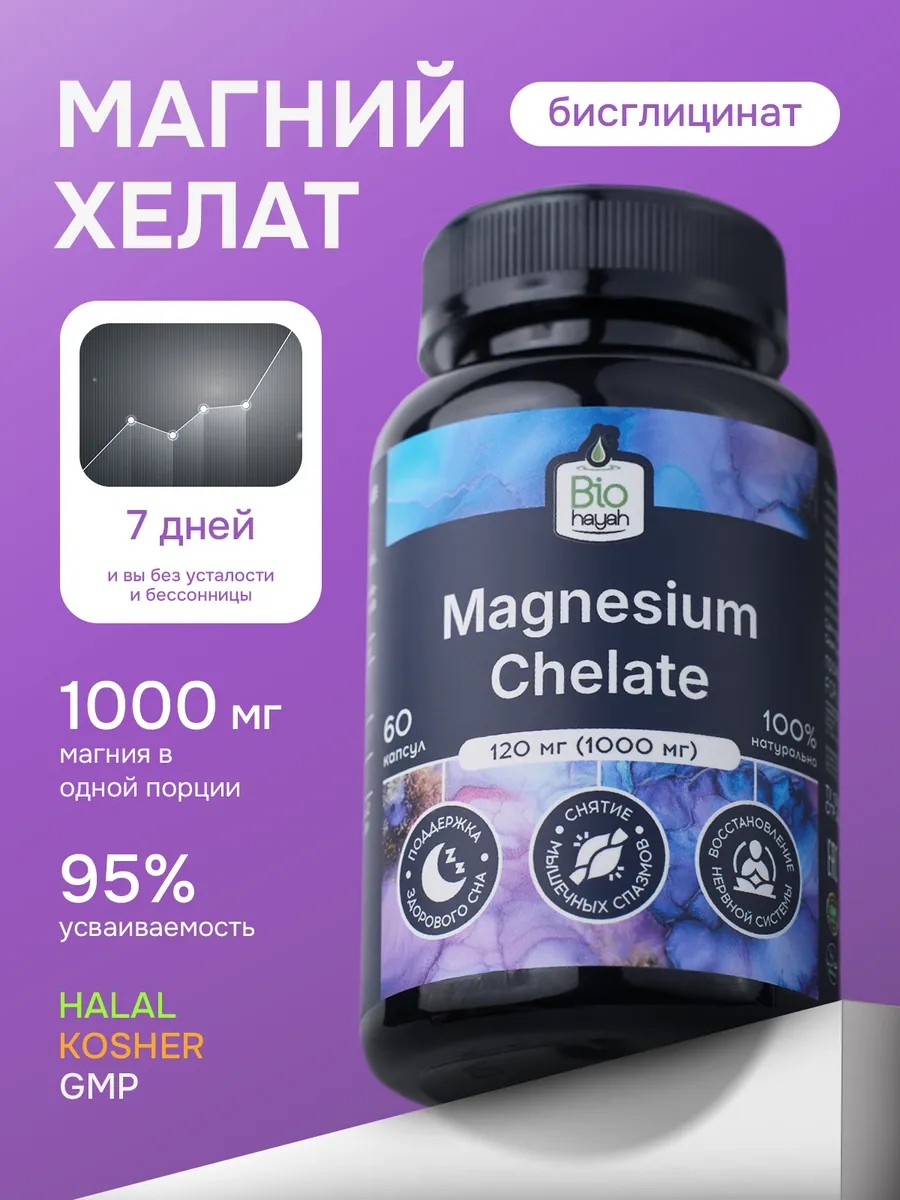 BioHayah Магний хелат глицинат от стресса и бессонницы 60 капсул