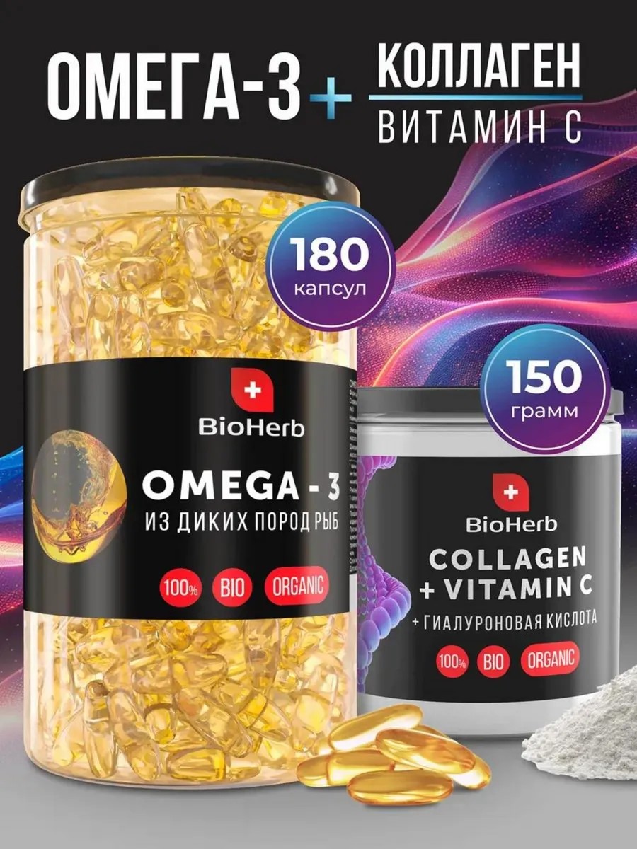 BioHerb Набор Коллаген с витамином С - 150 мг + Омега 3 - 180 капсул
