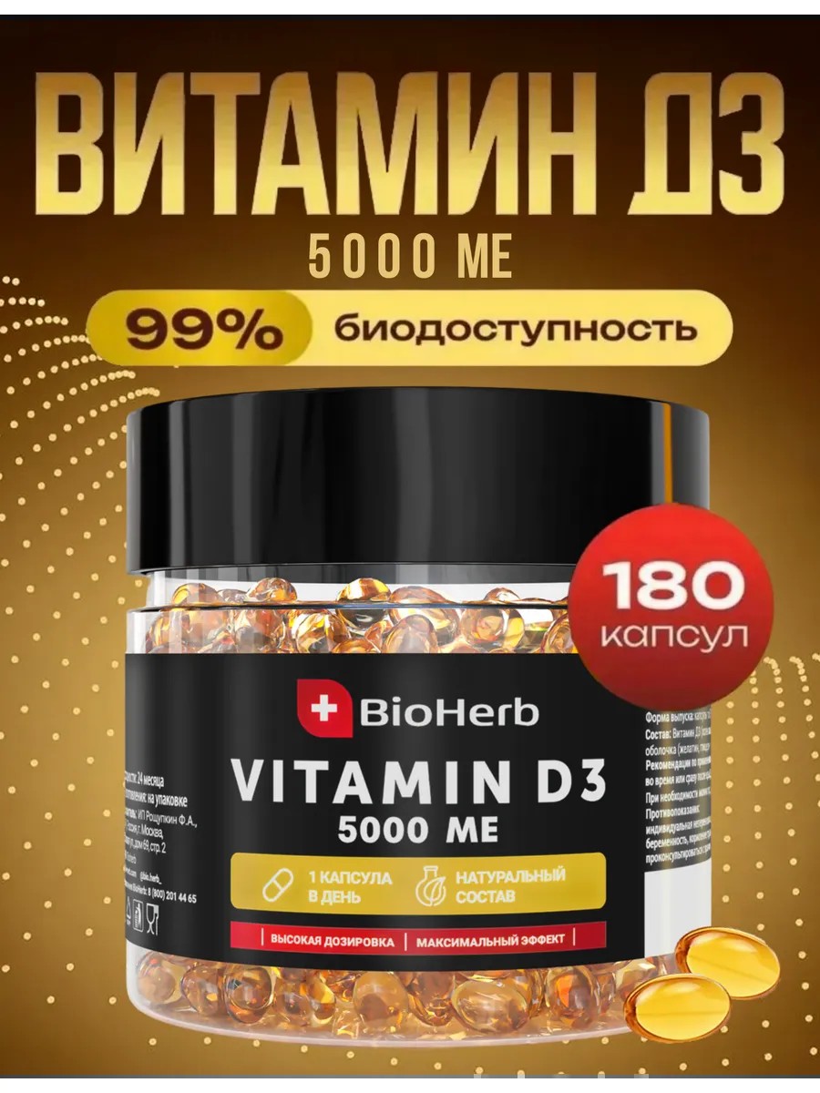 BioHerb Витамин Д3 5000 МЕ (холекальциферол) 180 капсул