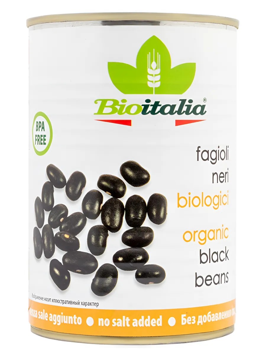 BIOITALIA Black Beans, Canned, 400g, is an organic Italian product that will become an important part of your healthy diet. Thanks to their nutritional properties, high digestibility, and caloric value, these beans can replace a full meal. BIOITALIA Black Beans, Canned, are packaged in a tin, ensuring product safety and ease of use. Soaking them in their own juice makes the beans even more delicious and aromatic. 100 grams of product contain 5.3 grams of protein, 8 grams of carbohydrates, and 0.6 grams of fat. The energy value is 72 kcal... BIOITALIA black beans do not contain sugar, salt, artificial colors, preservatives, lactose, dry milk, monosodium glutamate, palm oil, milk fat substitute, flavorings, GMOs, or other harmful additives... The product is suitable for kosher nutrition, can be used during Lent, and is suitable for vegetarians and vegans. The recommended storage temperature is from 0 to +25 degrees Celsius... By choosing BIOITALIA canned black beans, you get a high-quality and healthy product for your diet. INGREDIENTS: black beans, water
