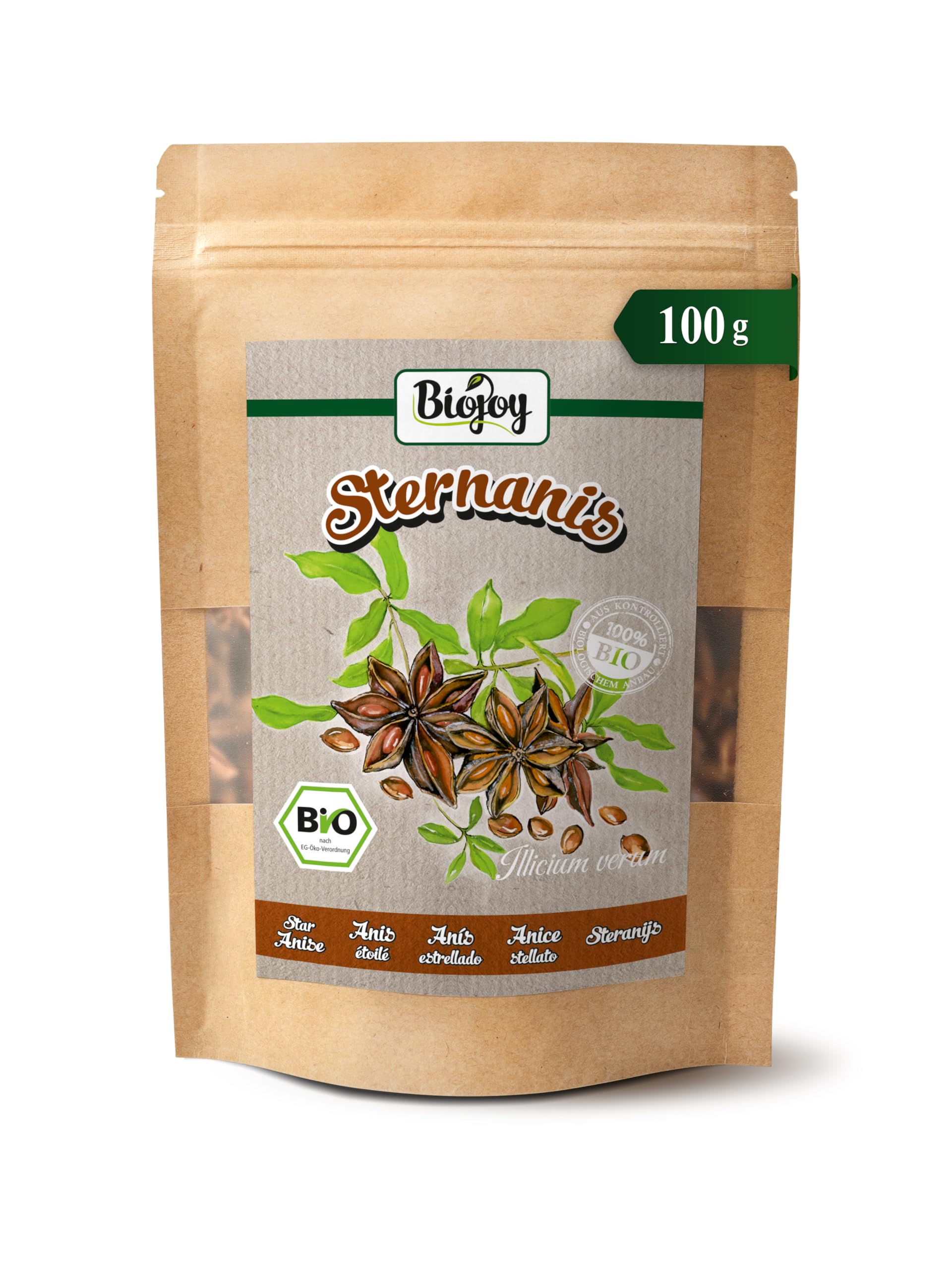 ? SATISFACTION Your satisfaction is important to us, so please leave a review after using Biojoy star anise. Your feedback will greatly contribute to ensuring the quality of our natural products! ? OUR TIPS Use star anise sparingly for punch and mulled wine one star is usually enough to flavor one liter of beverage. For a delicate aroma, remove the star after letting it steep in the drink for ten minutes. ? HOW? Star anise lends its distinctive spicy flavor to hot drinks such as tea and punch, as well as Christmas pastries like gingerbread cookies, and also to sweet dishes and Asian cuisine. ? WHY? Our star anise is an organic spice from sustainable agriculture, a 100 pure, natural product of the highest quality and with a powerful aroma. ? ORGANIC STAR ANISE Aromatic star anise of organic quality and with a low percentage of broken fruit - a favorite Christmas spice with an intense note of anise, natural, without artificial flavors or other additives.? SATISFACTION Votre satisfaction est importante pour nous, veuillez donc laisser une évaluation après avoir utilisé l anis étoilé de Biojoy. Vos commentaires de rétroaction contribueront beaucoup à assurer la qualité de nos produits naturels!. ? NOS CONSEILS Utilisez l anis avec parcimonie pour le punch et le vin chaud, une étoile suffit généralement pour aromatiser un litre de boisson. Pour donner un arôme délicat, retirez l étoile après avoir reposé pendant dix minutes dans la boisson. ? COMMENT? L anis étoilé prête sa saveur épicée distinctive aux boissons chaudes telles que le thé et le punch, ainsi qu aux pâtisseries de Noël telles que les biscuits au pain d épice, ainsi qu aux plats sucrés et à la cuisine orientale. ? POURQUOI? Notre anis étoilé est une épice BIO issue de l agriculture durable, un produit 100 naturel pur de la meilleure qualité et à l arôme puissant. ? ANIS ÉTOILE BIO Anis étoilé aromatique de qualité BIO et à faible pourcentage de fruits cassés - une épice de Noël préférée avec une note intense d anis, naturelle, sans arômes artificiels, ni autres additifs.Biojoy BIO-Anis étoilé entière (100 g), thé d'anis, sans additifs (Illicium verum)