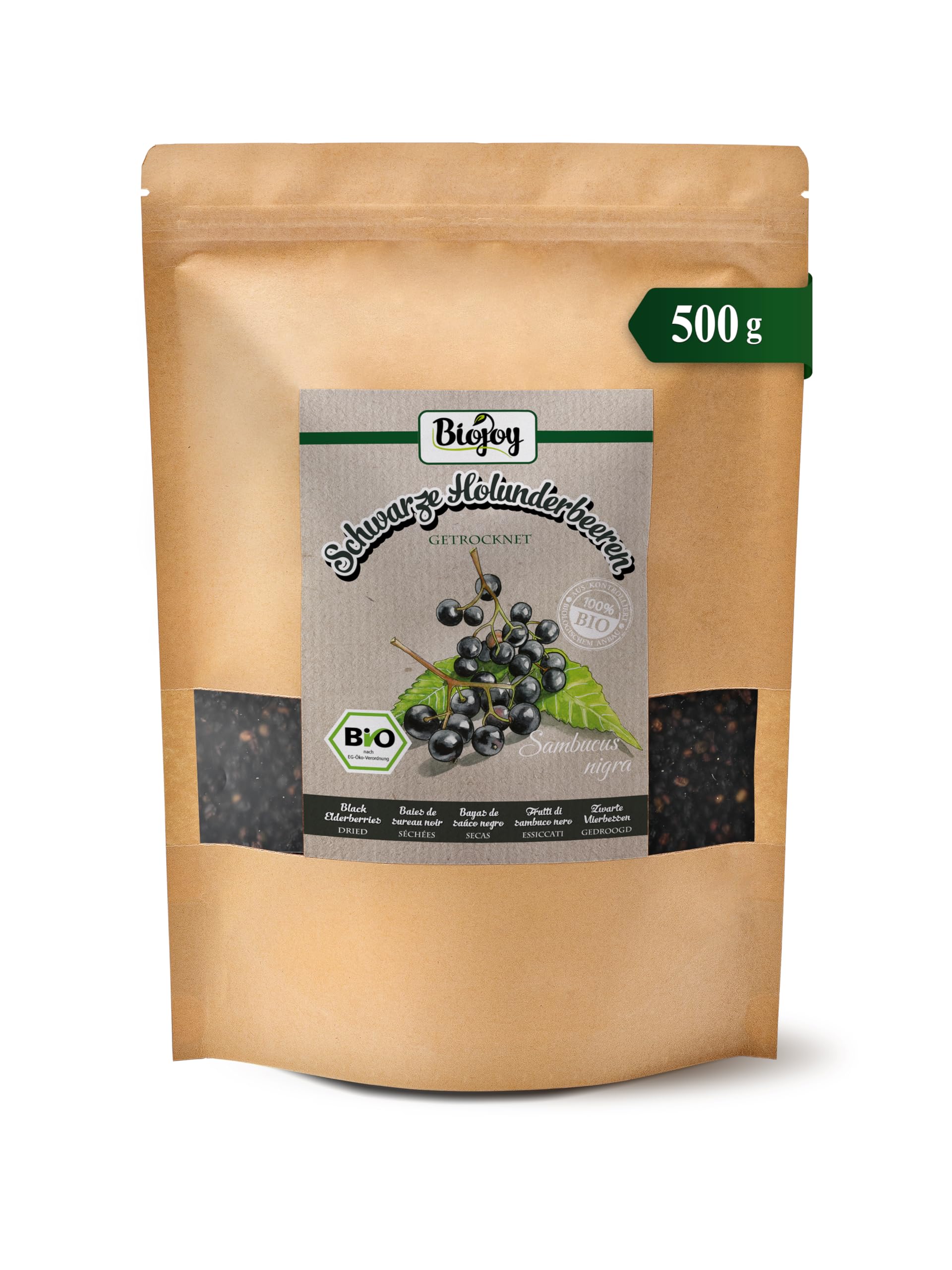 Biojoy BIOBlack elderberries dried and whole 500 g elderberry tea without additives Sambucus nigra