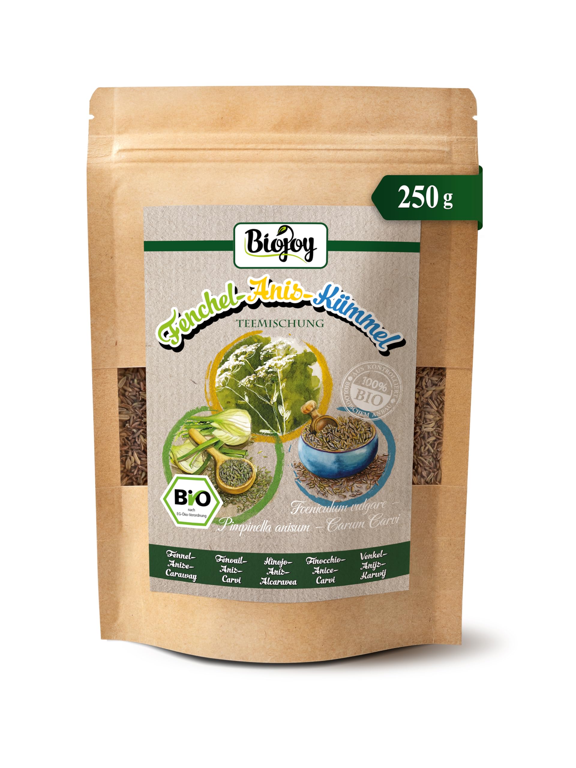 Biojoy Tisane de Fenouil Anis Carvi BIO (250 g), graines entières, sans additifs