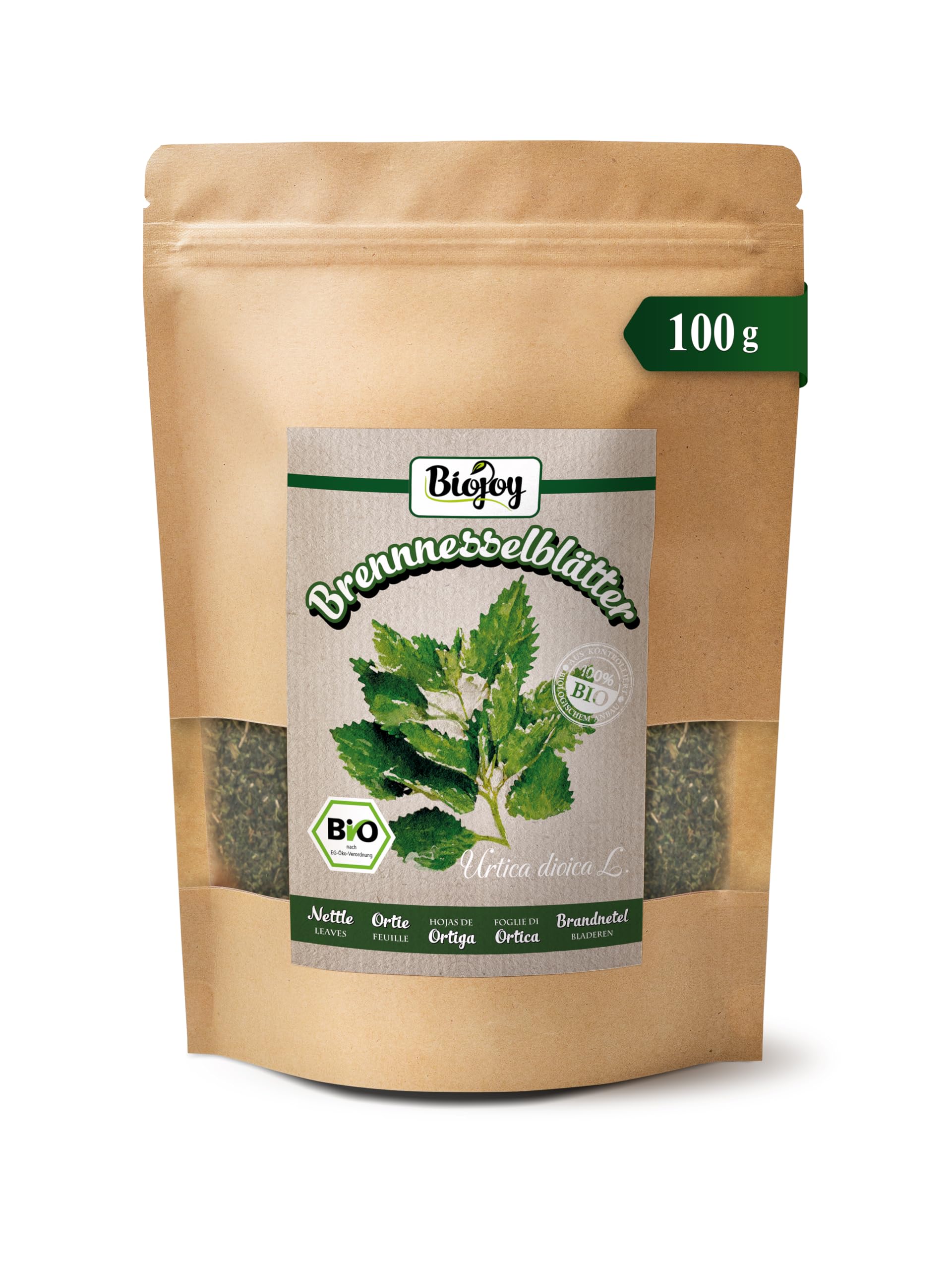 Biojoy Thé d'ortie BIO (100 g), séché et coupé, Feuilles d'ortie (Urtica dioica)