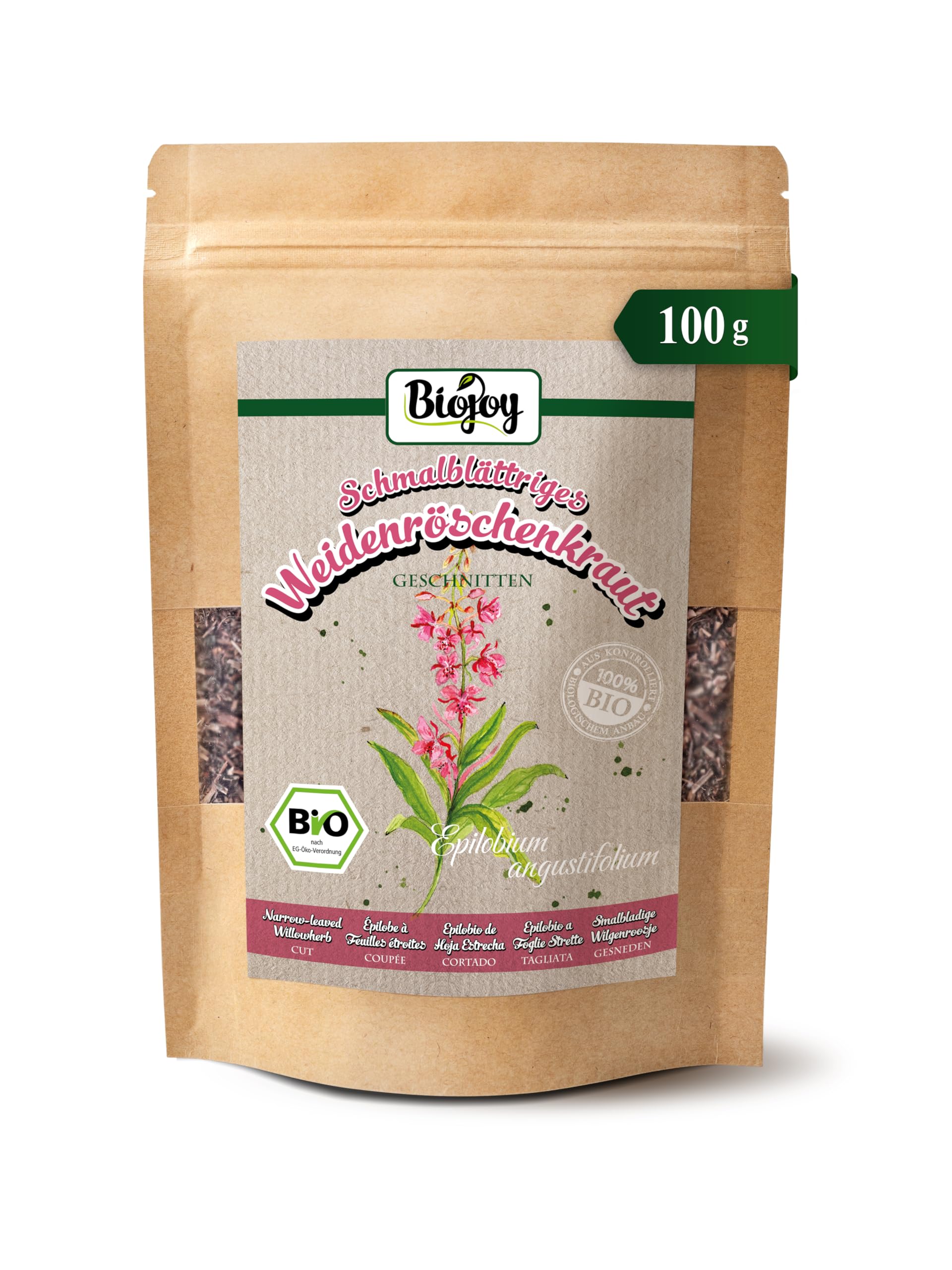 Biojoy Biologische Wilgenthee (100 g), Smalbladige Wilgenroosje, gedroogd en gesneden (Epilobium angustifolium)