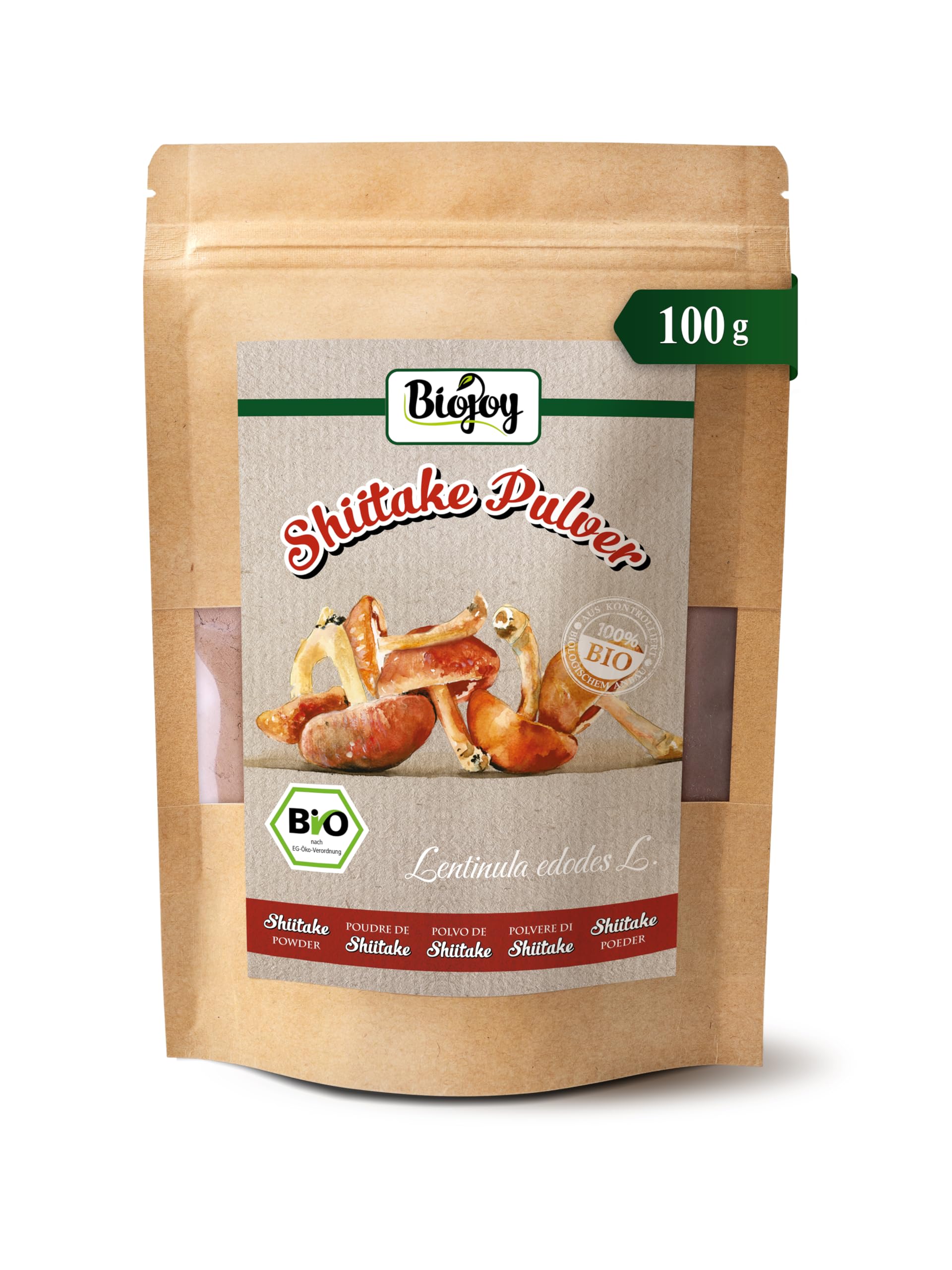 Biojoy Organic Shiitake Powder (100g) Dried and Finely Ground Shiitake Mushrooms (Lentinula edodes)