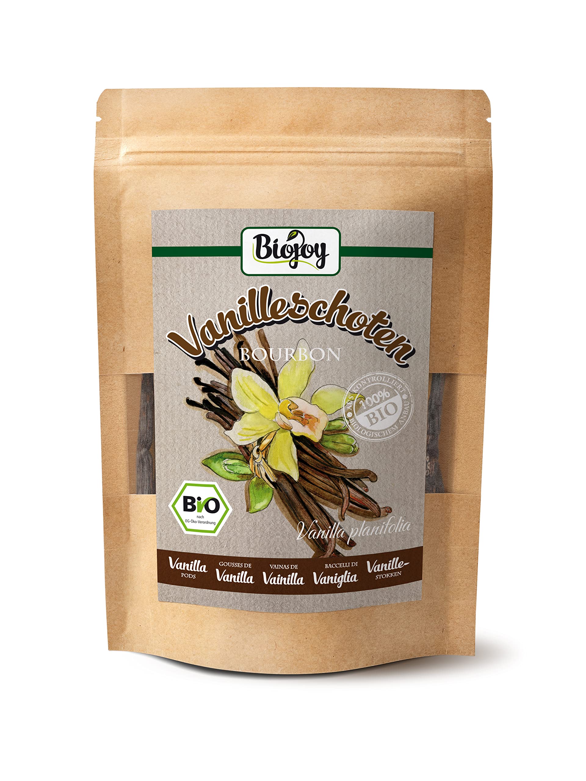 ? Satisfaction,Thank you for your purchase at BioJoy.We hope that the quality and aroma of our organic vanilla rods were able to convince you.By awarding stars and a short feedback, you and other customers can participate in your satisfaction.? Our tip,The aroma of the organic vanilla rods is optimally preserved after the package has been broken when you fill the pods into a high screw glass, which you store cool and dark after closing.? How?,Vanilla rods are productive because they can be used completely.After scraping out the inside of the oily vanilla steep, the capsule shell can be ground, cut or used as a whole.? Why?,BioJoy stands for the pure natural product from organic cultivation in the best quality.With our organic vanilla rods, you choose a careful and strictly controlled organic product that is guaranteed to be free from artificial flavors, preservatives and other additives.? Bio-vanilla rods (13-15 cm),Real vanilla made of controlled organic cultivation, the finest quality-as a whole dried and naturally fermented vanilla rods with intensive taste.? ZUFRIEDENHEIT,Besten Dank für Ihren Kauf bei Biojoy. Wir hoffen, dass Qualität und Aroma unserer BIO-Vanillestangen Sie überzeugen konnten. Durch eine Vergabe von Sternen und ein kurzes Feedback können Sie uns und anderen Kunden Ihre Zufriedenheit mittteilen. ? UNSER TIPP,Das Aroma der BIO-Vanillestangen bleibt nach Anbruch der Packung optimal erhalten, wenn Sie die Schoten in ein hohes Schraubglas füllen, das Sie nach dem Verschließen kühl und dunkel lagern. ? WIE?,Vanillestangen sind ergiebig, weil sie sich komplett verwerten lassen. Nach dem Herausschaben des innenliegenden öligen Vanillemarks kann die Kapselhülle gemahlen, zerschnitten oder im Ganzen weiterverwendet werden. ? WARUM?,Biojoy steht für das reine Naturprodukt aus biologischem Anbau in bester Qualität. Sie entscheiden sich mit unseren BIO-Vanillestangen für ein mit Sorgfalt erzeugtes und streng kontrolliertes BIO-Produkt, das garantiert frei ist von künstlichen Aromen, Konservierungsstoffen und sonstigen Zusätzen. ? BIO-VANILLESTANGEN (13-15 cm),Echte Vanille aus kontrolliertem BIO-Anbau, feinste Qualität – im Ganzen schonend getrocknete und natürlich fermentierte Vanillestangen mit intensivem Geschmack.Biojoy BIO-Vanilleschoten (20 Stück), Bourbon Vanille aus Madagaskar 13-15 cm