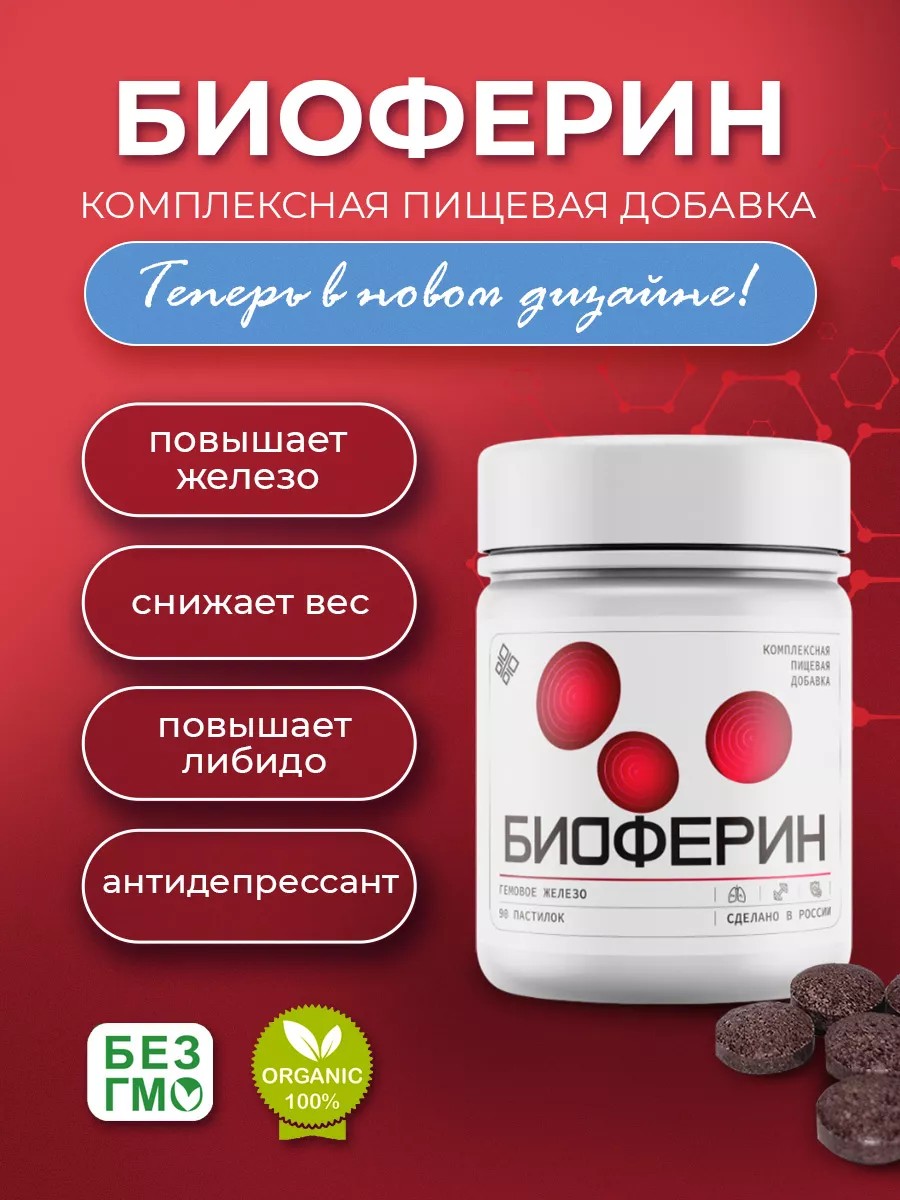 Биоферин - это натуральный продукт, который представляет собой гемовое железо. Устраняет дефицит железа в организме, эффективен в профилактике железодефицитной анемии (ЖДА). Способствует производству железосодержащих ферментов. Усиливает иммунитет, насыщает кровь кислородом. Органическое железо, входящее в состав, содержит в себе высоко очищенный и обработанный особым образом гемоглобин. Не уступает и даже превосходит лекарства своей эффективностью. Исключает возможность передозировок и побочных эффектов. Биодоступный биоферин в отличие от других витаминов и биологических добавок, имеет высокую степень усвояемости. Обладающий гемовым свойством этот микроэлемент практически полностью усваивается организмом. Наш препарат успешно применяется уже более 5 лет и имеет множество положительных отзывов. Если вы страдаете от хронической усталости, утомляемости и головокружений, он поможет вам справиться с этими проблемами. Он также полезен при частых простудах и вирусных инфекциях, таких как ОРЗ и ОРВИ. Его рекомендуется принимать при депрессивных и стрессовых (постстрессовых) состояниях, снижении выносливости и жизненной энергии. Кроме того, он полезен при высокой умственной и физической нагрузке, помогая вам справиться с ней более эффективно. Преимущества использования Биоферина включают нормализацию кроветворения и производства эритроцитов. Он также способствует производству железосодержащих ферментов, что повышает эффективность обменных процессов в организме. Наряду с этим, препарат помогает быстрому восстановлению после операций. Если употреблять пищевую добавку (не БАД) систематически, нормализуется сон, улучшается состояние кожи, волос и ногтей. Как и мультивитамины значительно повышают энергию и выносливость организма. Для женщин и девушек прием биоферина очень важен особенно в период планирования беременности. Восстанавливают депозитарий железа в организме, что очень важно не только в период вынашивания ребенка, но и после родов и во время грудного вскармливания. Дети также должны получать достаточное количество гемового железа. Его недостаток может привести к различным проблемам. Первыми симптомами дефицита могут быть слабость, повышенная утомляемость, снижение концентрации внимания и плохое настроение. Наша добавка способствуюет гармоничному росту и развитию ребенка., обеспечивая его организм необходимыми питательными веществами. Мужчинам же данный комплекс поможет укрепить иммунитет. Восстанавливает мужскую и женскую репродуктивную функцию. Наш продукт можно принимать для приема в качестве как профилактического средства, так и как часть комплексной терапии при анемии. Безопасен к применению. Не откладывайте заботу о своем здоровье на потом – покупайте и начните использовать Биоферин прямо сейчас!