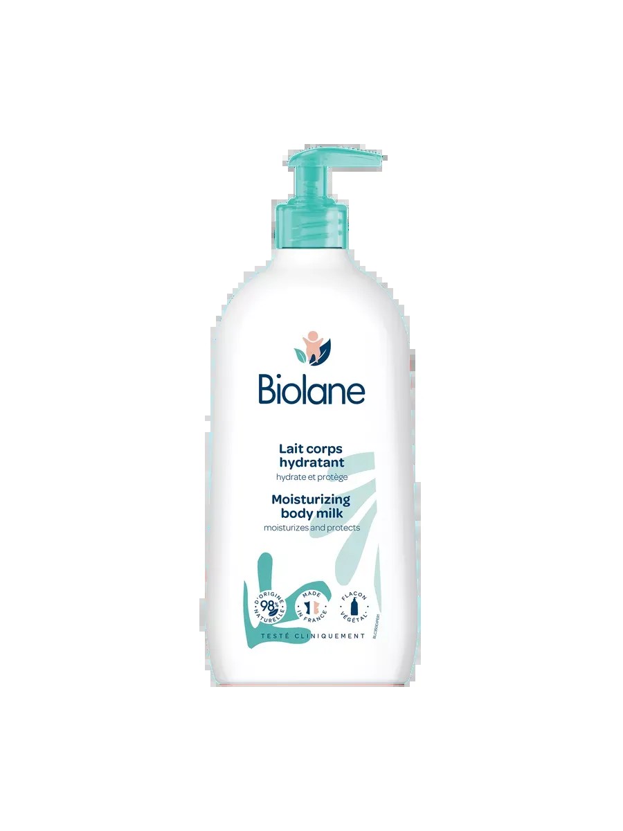 Biolane Gentle Nourishing Body Lotion is ideal for dry, sensitive, atopic skin in newborns, children, and adults. This caring cream-butter for hands, body, and face is designed for sensitive and atopic skin. This body cream moisturizes and softens after showering and bathing, maintains elasticity, and protects against dryness during the heating season. Its lightweight formula with panthenol absorbs quickly and supplies delicate skin with moisture for 24 hours. This panthenol-containing lotion is suitable for all skin types: normal and oily, dry and combination, problematic, and sensitive. Lait Corps Hydratant Hand Lotion is especially essential during the winter. Its active protection complex prevents excessive moisture loss through baby's skin. This lightweight and surprisingly gentle 0+ product with a convenient dispenser deeply moisturizes and protects baby's delicate skin. It protects against diaper rash and relieves redness and irritation, even in newborns' intimate areas. The product contains over 98% plant-based ingredients. Suitable for babies from birth and for the whole family. Biolane is hypoallergenic cosmetics for children, made in France. The main active ingredients are beeswax and sweet almond oil. Suitable for use after bathing and showering. This skin care product contains beeswax, which has excellent soothing and protective properties, smoothing and healing chapped skin. It rejuvenates and nourishes the skin thanks to antioxidants and vitamin A. Sweet almond oil relieves dryness and irritation, improves elasticity, and tones the skin. The dispenser makes it convenient for daily use and baby care. It is recommended for application to the hands and face of women, men, and teenagers. The milk-gel is used in daily care. Pharmacy cosmetics. Emollient. Made in France. French children's care cosmetics for babies.