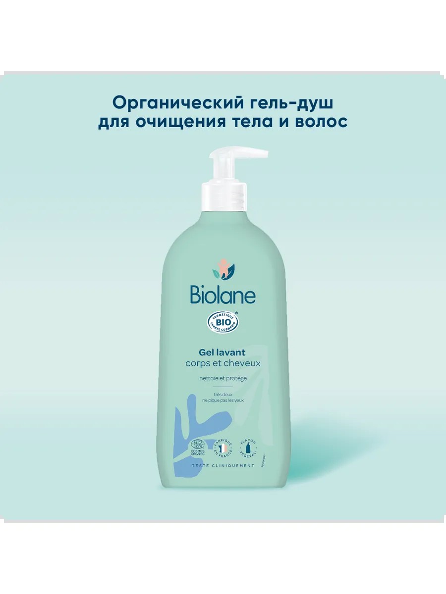 Biolane Органический гель-душ для очищения тела и волос, 500мл