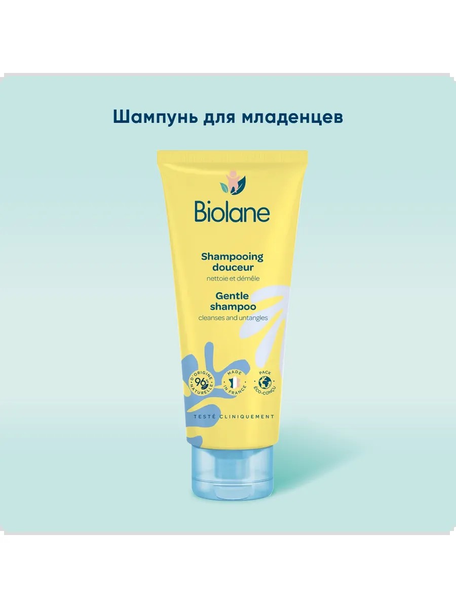 Нежная формула шампуня Biolane 200 мл очищает и распутывает тонкие волосы ребенка.