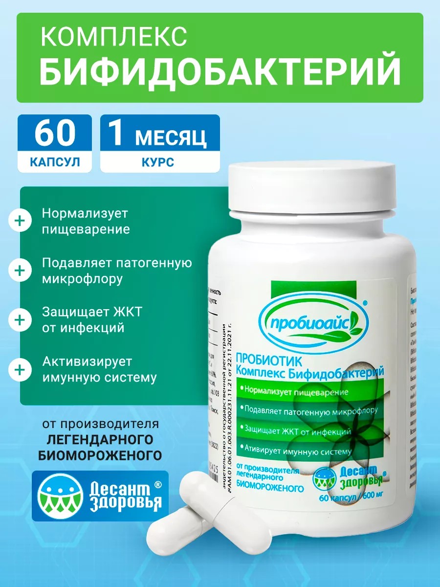 Пробиотик Пробиоайс от ТМ Десант Здоровья – это комплекс, предназначенный для поддержки здоровья пищеварительной системы и общего благополучия организма. Он содержит живые бактерии и другие микроорганизмы, которые помогают восстанавливать и поддерживать здоровую микрофлору. Пробиотики для кишечника необходимы каждому взрослому. Пробиотики и пребиотики способствуют улучшению работы ЖКТ. Применяются для профилактики и в качестве комплексной терапии при атопических дерматитах, угревой сыпи, аллергозах, асептических реакциях, дисбактериозах и кишечных инфекциях. Бад обогащен разнообразными штампами полезных бактерий: бифидобактериями, лактобактериями, пропионовокислыми бактериями. В совокупности они помогают восстановить и поддержать естественный баланс микрофлоры, улучшить пищеварение, повысить уровень иммунитета. Наш пробиотик является источником высокого качества живых пробиотических культур, специально подобранных для поддержки здоровья вашего пищеварительного тракта. Комплекс не содержит ГМО, лактозу, диоксид титана и красителей. Можно принимать для детокса или очищения организма. Представлен в форме капсул. Показан с первого дня приема антибактериальной, гормональной терапии, при авитаминозе, пищевых и алкогольных отправлениях. Ферменты для пищеварения очищают кишечник и органы от токсинов, способствуют нормализации работы желудочно-кишечного тракта. Пробиотики для женщин и мужчин могут быть использованы в качестве дополнения к здоровому образу жизни, включающему сбалансированное питание и регулярную физическую активность.