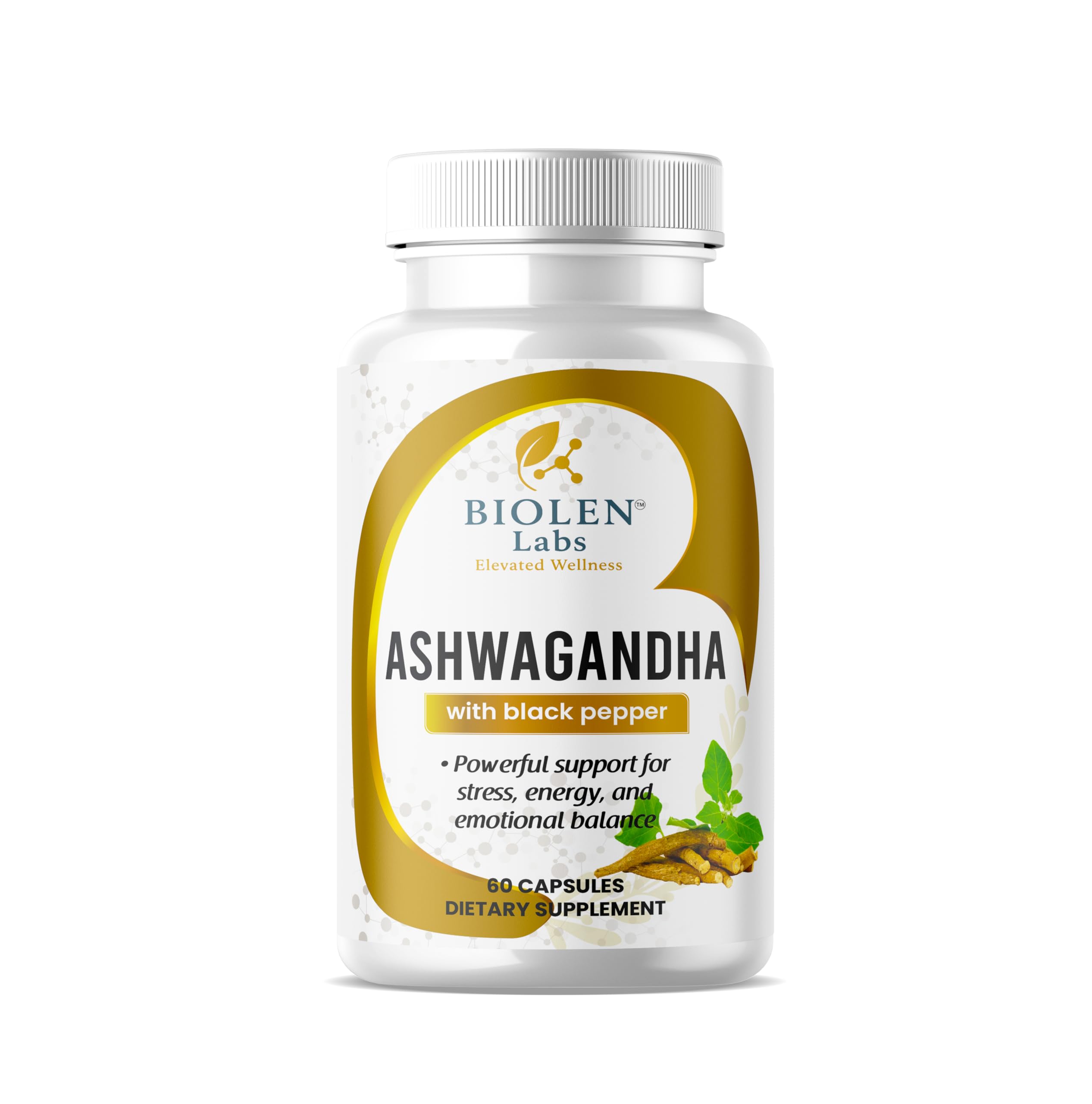 Biolen Labs Ashwagandha Extra Strength with Black Pepper 1300mg 60 Capsules Natural Stress Relief Mood Support Energy Supplement
